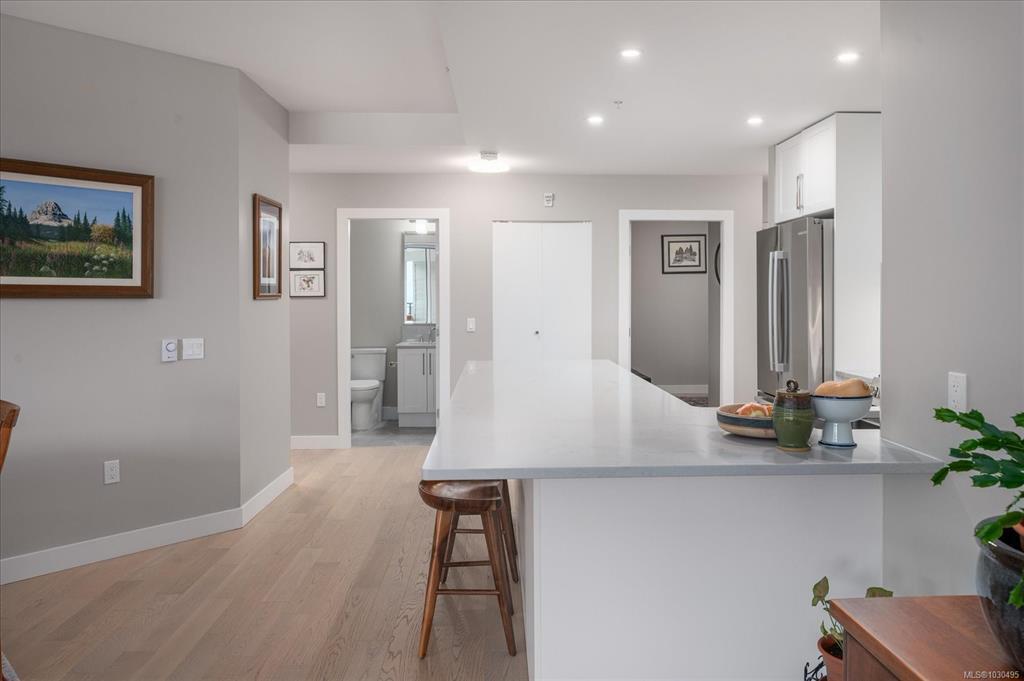 Largest floor plan at The Westerly! Oceanview is at its best with this modern spacious open-concept condo with 2 bedrooms, one den & 3 bathrooms in Nanoose Bay. Fabulous modern kitchen with a walk-in pantry, garburator, stainless steel hood fan & high-end S/S appliances including a gas stove. A large living room with a gas fireplace. The sleek modern great room has floor-to-ceiling windows that open to let in loads of natural light & provide access to the oversized covered patio. The primary suite has floor-to-ceiling windows with a view of the ocean, a walk-in closet & luxurious bathroom with a walk-in shower, two sinks & a separate water closet. Second bedroom is spacious with a closet & an ensuite. There is also a den. Laundry room has plenty of storage. All closets have been outfitted with custom organizers. Versatile blackout/shear window coverings. Secured underground parking. Amazing amenities include the Schooner Cover Marina, Nanoose Bay Cafe, Fairwinds Golf & Wellness Club.