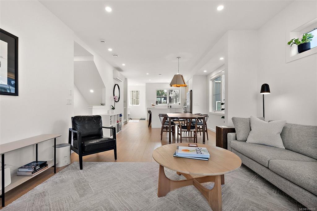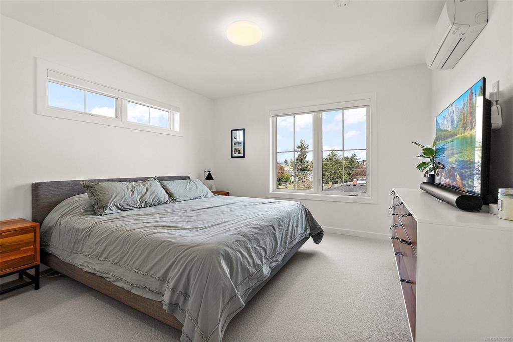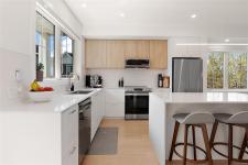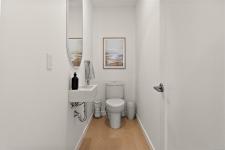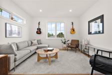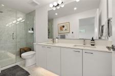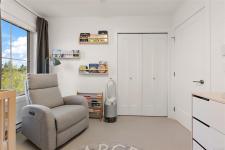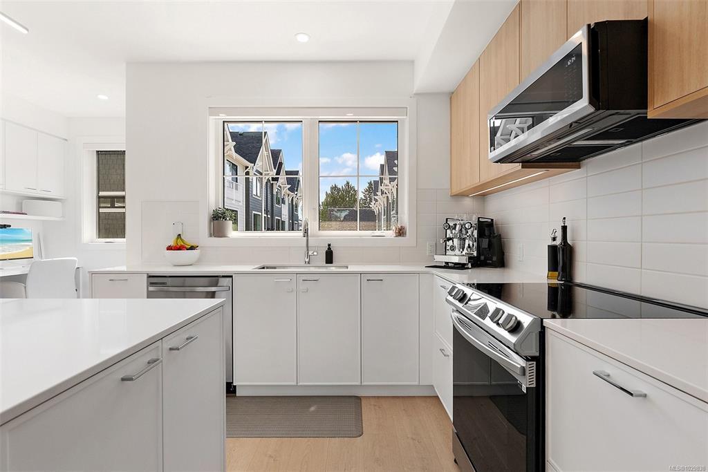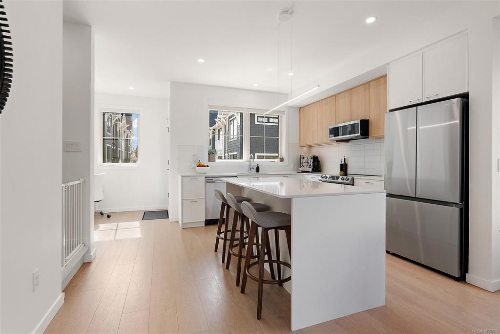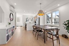 Welcome to Greyson Townhome Collection by Abstract, offering timeless design with modern comfort. This bright, corner home with unobstructed sight lines to the South & West is one of the finest, with 1,854 sf of thoughtful living space and large windows that fill the home with natural light. The main level features a stylish kitchen with quartz counters, large island, full-height pantry, & built-in workspace. Upstairs offers large bedrooms while the lower-level flex room serves as a 4th bedroom or media room with outdoor access and a large closet. The lower level storage room (or possible bathroom), is already plumbed and wired for future potential. Enjoy a balcony & private, fully fenced courtyard with irrigated landscaping for your exclusive use. Upgrades include Epoxy garage floor & heat pump with AC. The home is smart-enabled for control of lighting, climate, and appliances. Garage is EV-ready with Level 2 charging and rough-ins for future solar. 2-5-10 warranty. NO GST