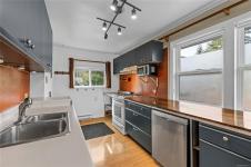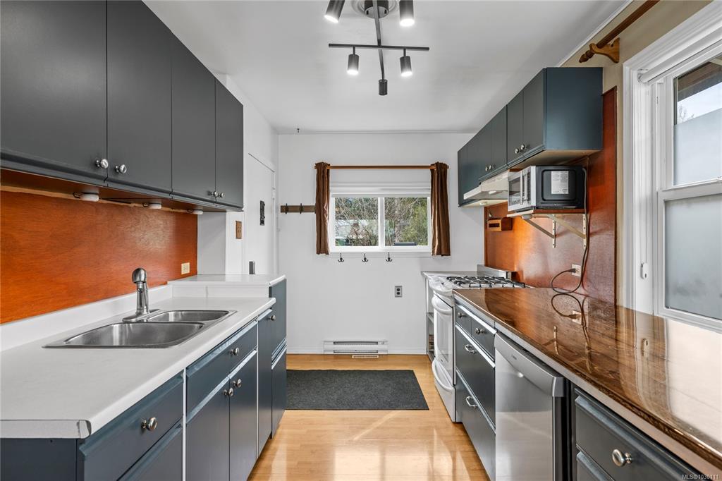 FIRST TIME BUYER ALERT WITH A DETACHED SHOP. This 2 bed, 1.5 bath home offers a bright and open feel with peek-a-boo ocean views. The open-concept kitchen/living area is filled with lots of natural light through large windows. The lower level adds versatility, featuring space ideal for a hobby room, workshop, or storage. Outside, the property truly shines with a 500 sq/ft shop with 200 amp service, and a fully fenced yard complete with fruit trees, a garden area, and an irrigation system. Gas has been run to the home and is ready for added appliances or future updates. Recent updates include new flooring, furnace (2018), hot water tank (2017), roof (2013), windows (2013), decks (2015), and rear stairs (2020). Located within walking distance to schools and town, this home offers the perfect balance of comfort, convenience, and value. An ideal opportunity for first-time buyers or those looking to downsize without compromising on outdoor space or functionality.