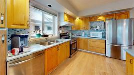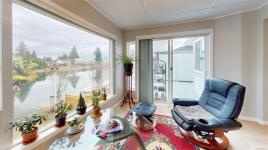 Relaxing waterfront property, looking over the lake from both levels. Three bedroom layout on the upper floor with 2 bedrooms on the walkout basement level. Great rental potential for the basement or bright inlaw suite. Laminate flooring throughout the main floor. Heat pump Air Conditioning. Large sunroom to enjoy the views all year round with an ample sized outside deck. The master bedroom has lakeside morning views. Nice Garden bed areas in the back yard terraced to the waterfront where you can launch your kayak or Row Boat. Plenty of room to enjoy your lakefront oasis.