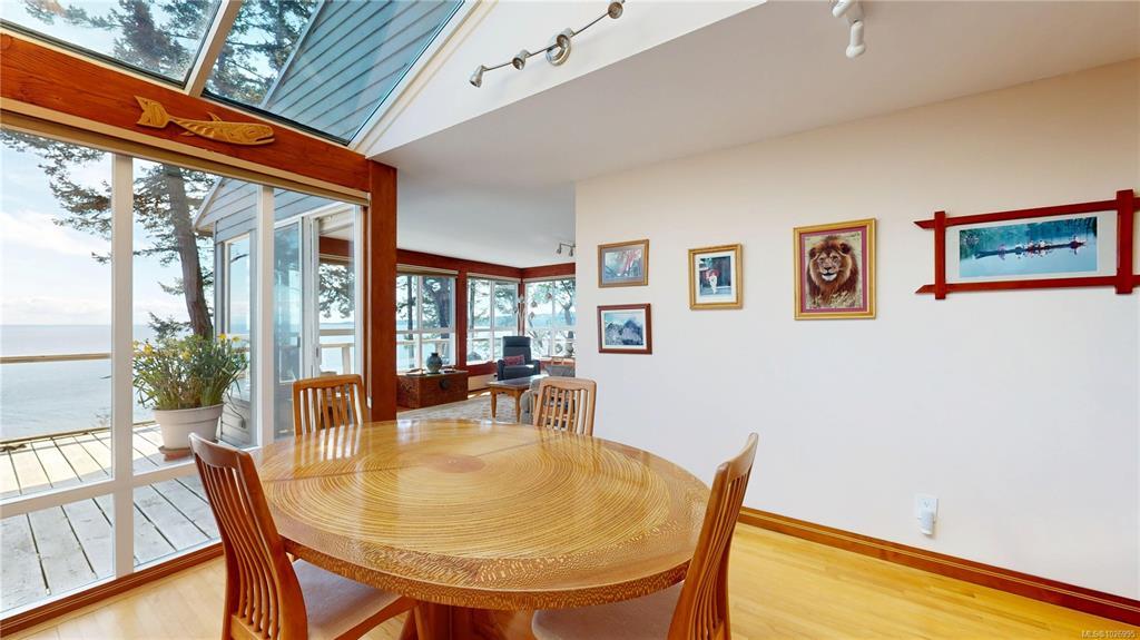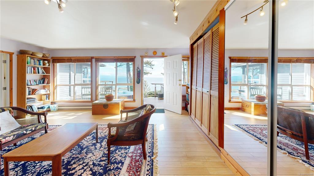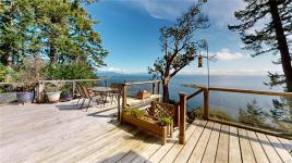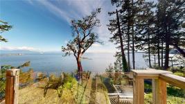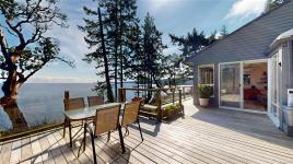 Set on 1.16 acres in a very private waterfront setting, this architect-designed 3-bedroom, 3-bathroom home takes full advantage of its incredible position, with sweeping views across the Salish Sea to the snow-covered mountains beyond.