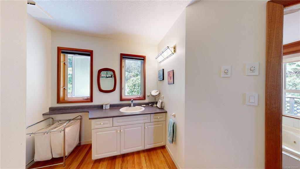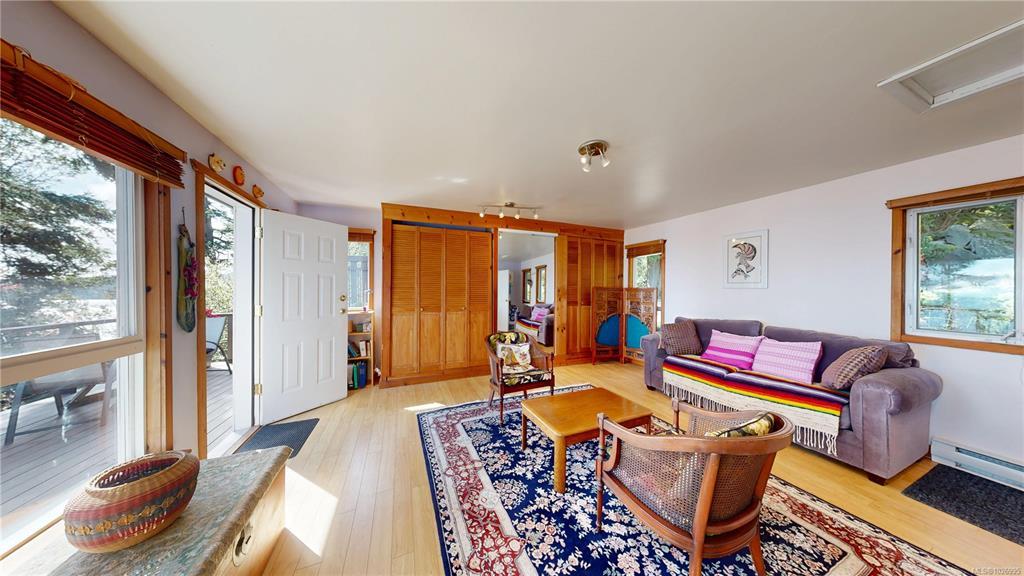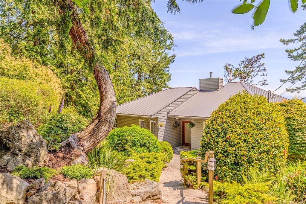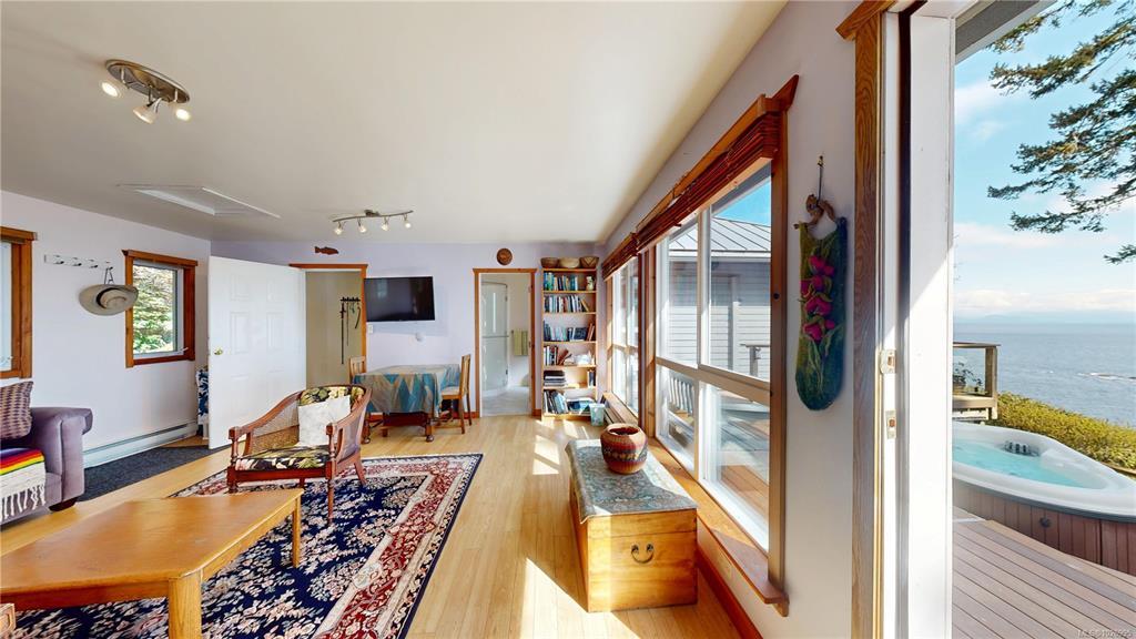 The open-plan design feels connected, comfortable, and full of light, with large windows framing the views from almost every room.It’s a home that immediately draws you in—feeling like stepping into a picture.Wood siding blends into the natural setting, with a heat pump and propane stove for comfort.A spacious deck and hot tub are perfectly positioned to enjoy the ever-changing outlook, from sunrise over Mount Baker to evening light on the water, with seals, eagles, and marine life part of the daily scene. Peaceful and private, the property is sheltered while enjoying wide ocean views. Landscaped grounds feature layered gardens,Japanese elements,a labyrinth,plus studio,teahouse,and workshop spaces offering flexibility.Video & virtual tour are available.