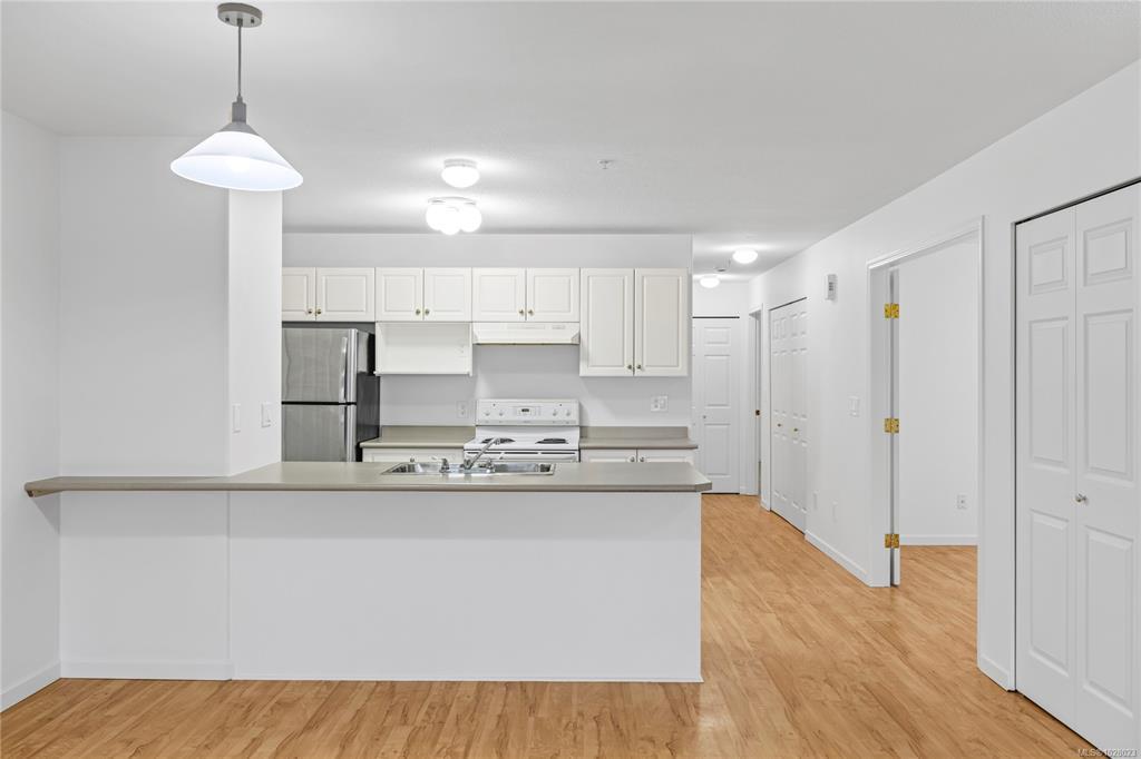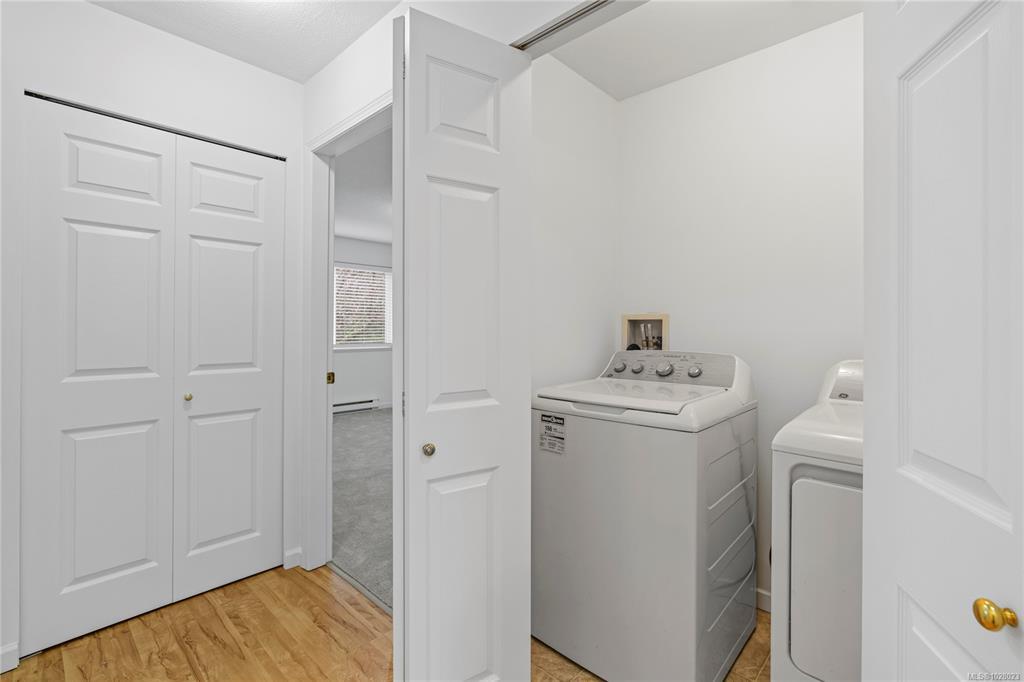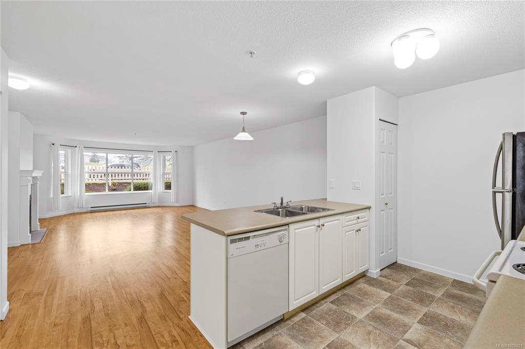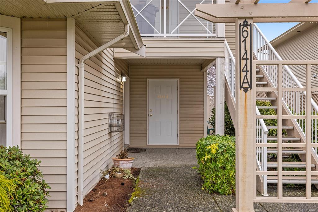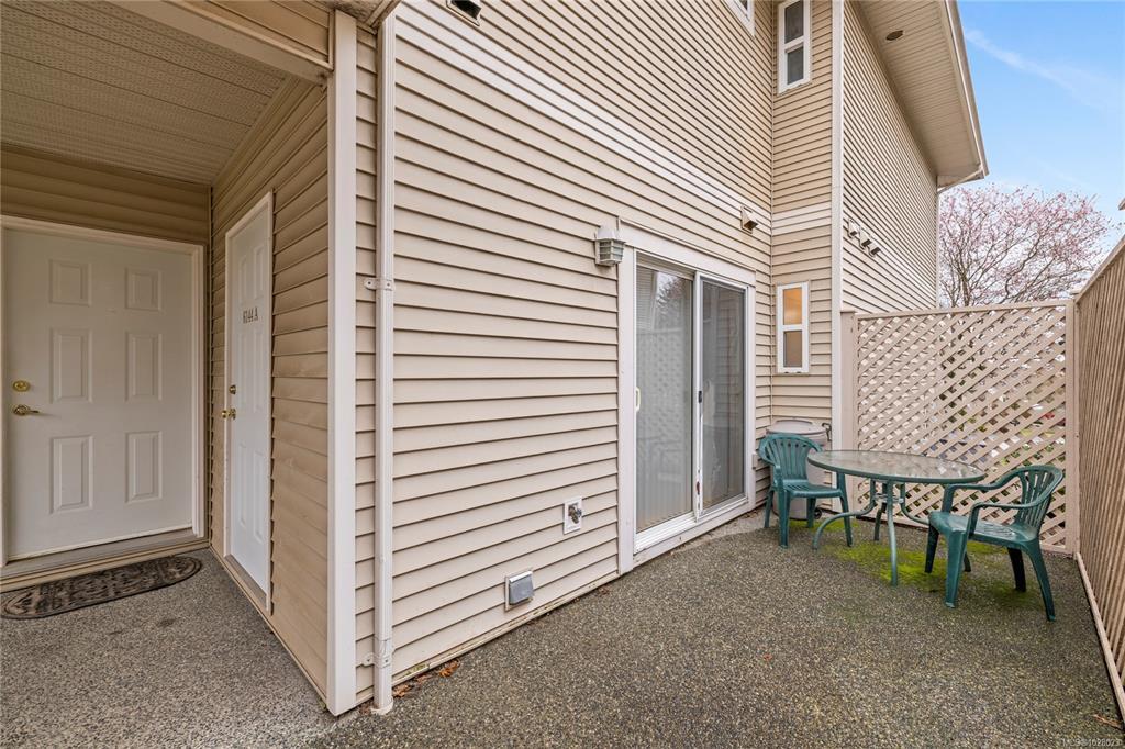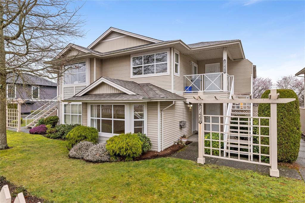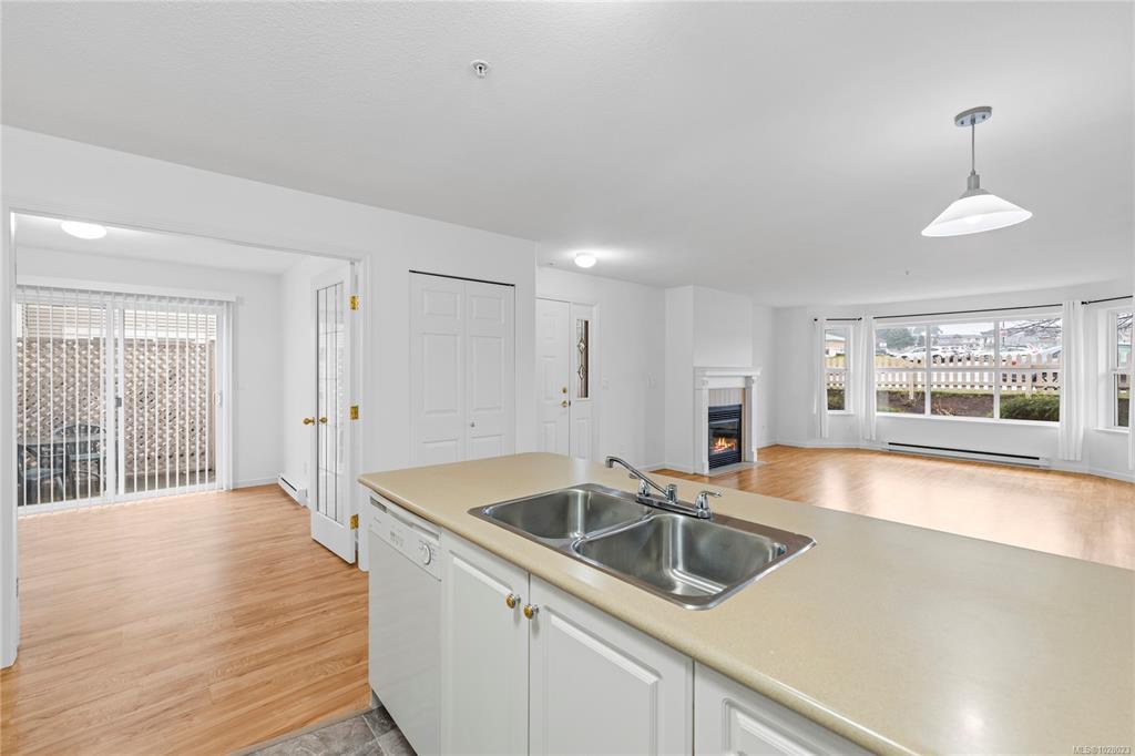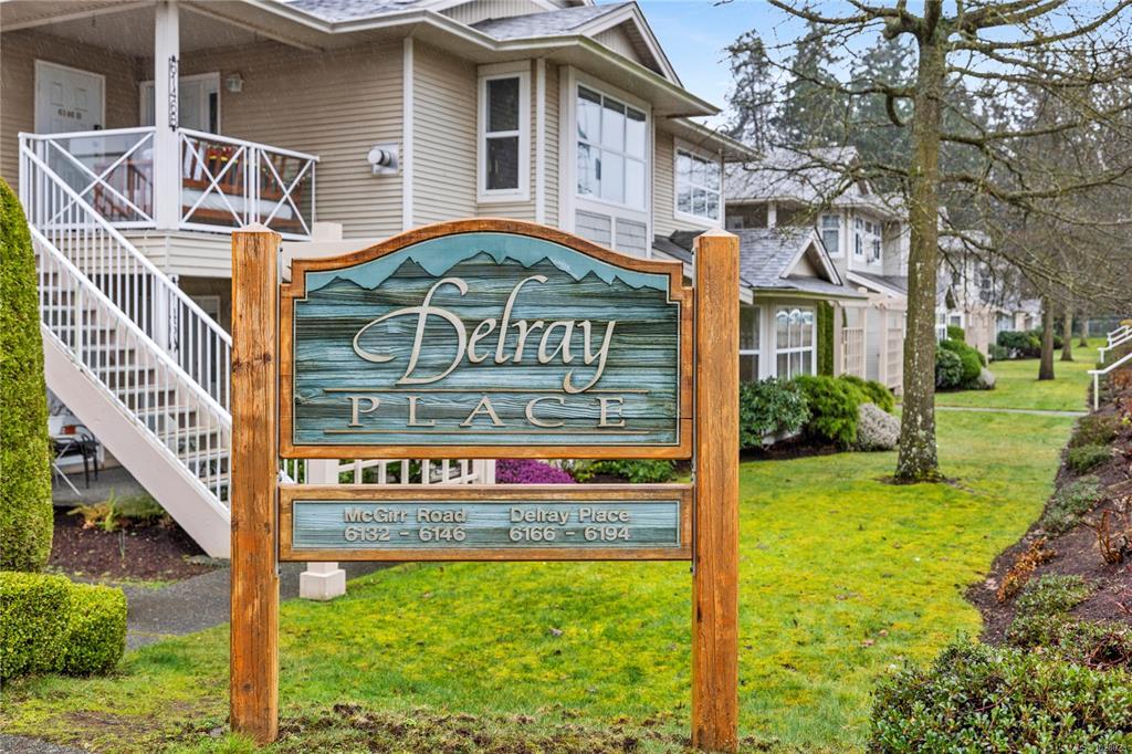 Bright, refreshed & ideally located in the desirable Delray Place community in North Nanaimo. Just steps from schools, shopping, restaurants & only a couple of blocks from beach access, everyday amenities are right at your doorstep. Inside, the open-concept living area is filled with natural light, with large windows, durable laminate flooring & a cozy fireplace creating a warm & inviting space. The layout includes 2 bedrooms, 2 bathrooms & a versatile den. The primary bedroom features a spacious closet & 3-piece ensuite & the den offers direct patio access. The home has recently undergone an interior refresh, including professional painting, brand-new carpets & updated flooring in the kitchen & bathrooms. Pet lovers will appreciate the flexible pet policy allowing up to 2 dogs/cats with NO size restrictions. Parking is a highlight, with an oversized 25-ft stall & street parking right outside the home. Additional storage is available with a dedicated storage room & bonus crawl space.