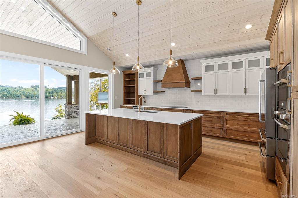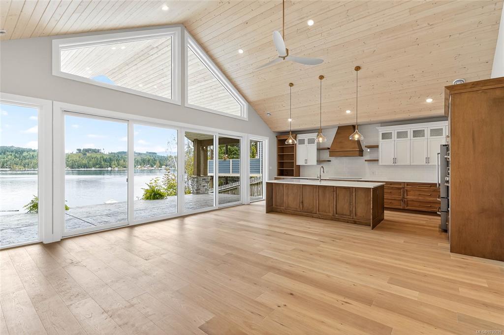 Rare New Custom Home on Sproat Lake Waterfront! This beautifully designed 4 bedroom, 2.5 bath home sits on a 0.56 acre waterfront lot. Enjoy breathtaking lake views from the open-concept area with vaulted ceilings, gas fireplace, gourmet kitchen with maple cabinetry, quartz countertops, and a full appliance package including induction cooktop & wall ovens. Expansive sliding glass doors open to a covered patio with gas BBQ hookup. The main floor features a primary bedroom with 2 closets & a luxurious en-suite bathroom. Also on the main level, a spacious laundry room with storage & a 2-piece bathroom with storage. Upstairs, you'll find 3 generously sized bedrooms, a 4 piece bathroom. There's a detached over-height garage, ideal for your boat, with RV plug & EV unit wiring. With a new dock, water system, septic, & 10-year New Home Warranty, move in & enjoy lake living worry free! Only 15 minutes from Port Alberni & just over an hour to Nanaimo or the West Coast. GST applicable.