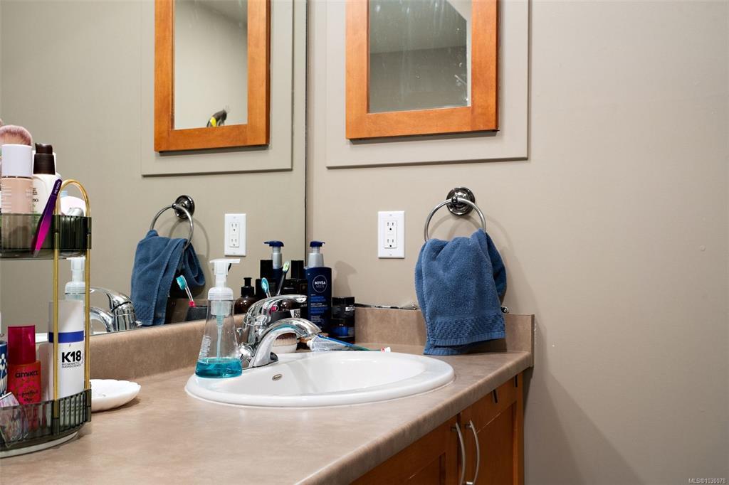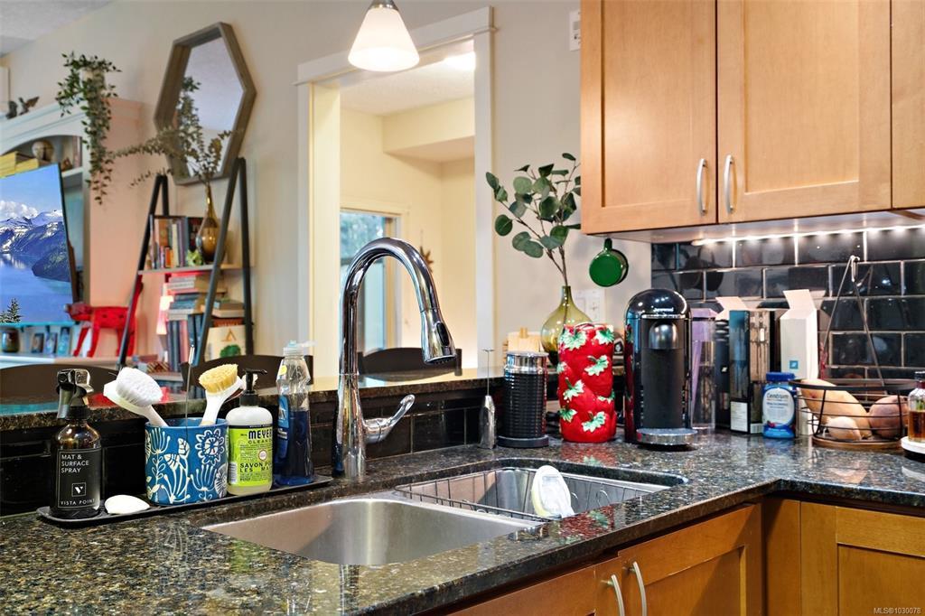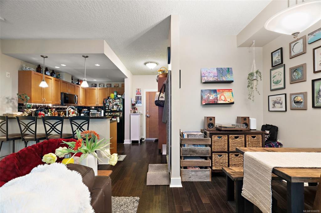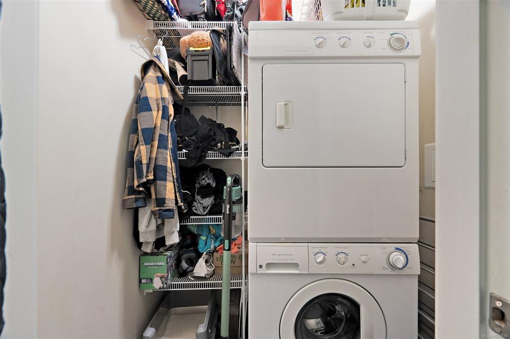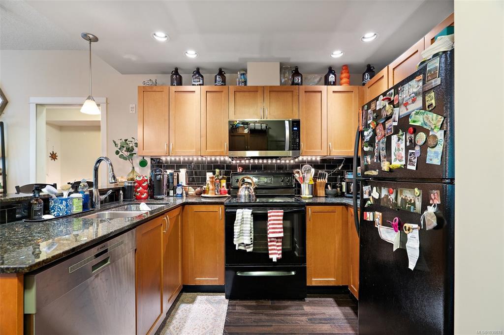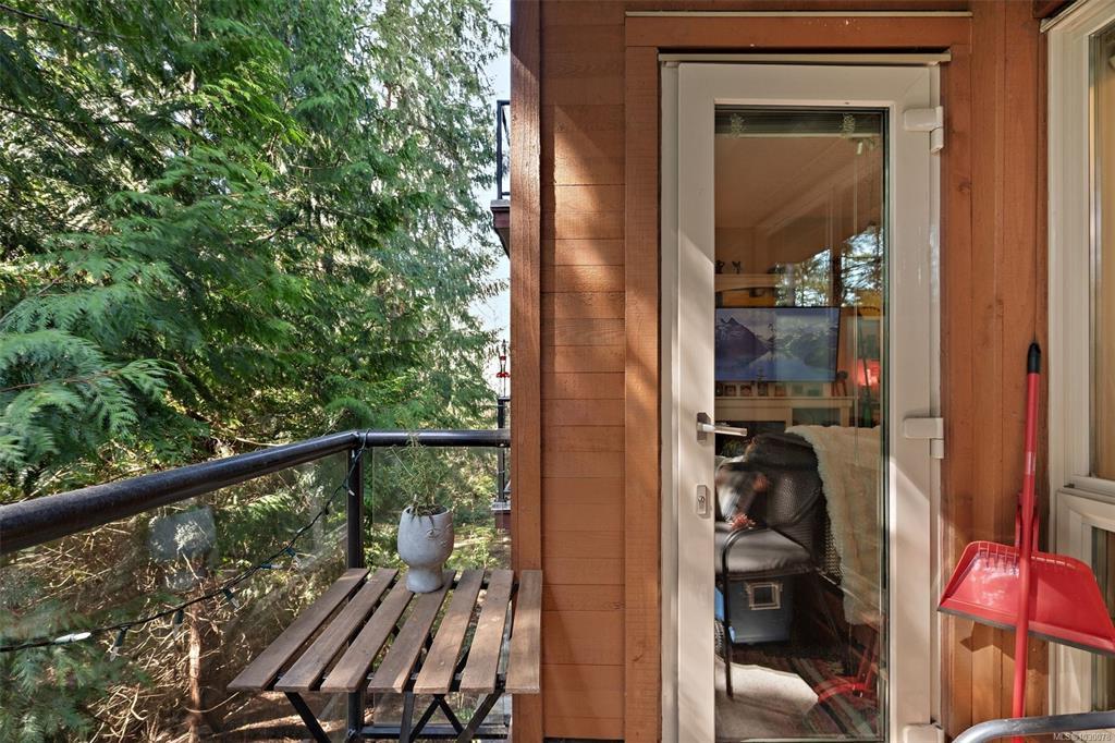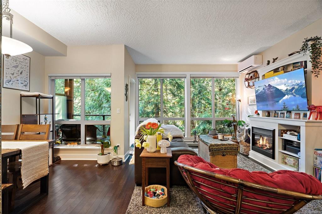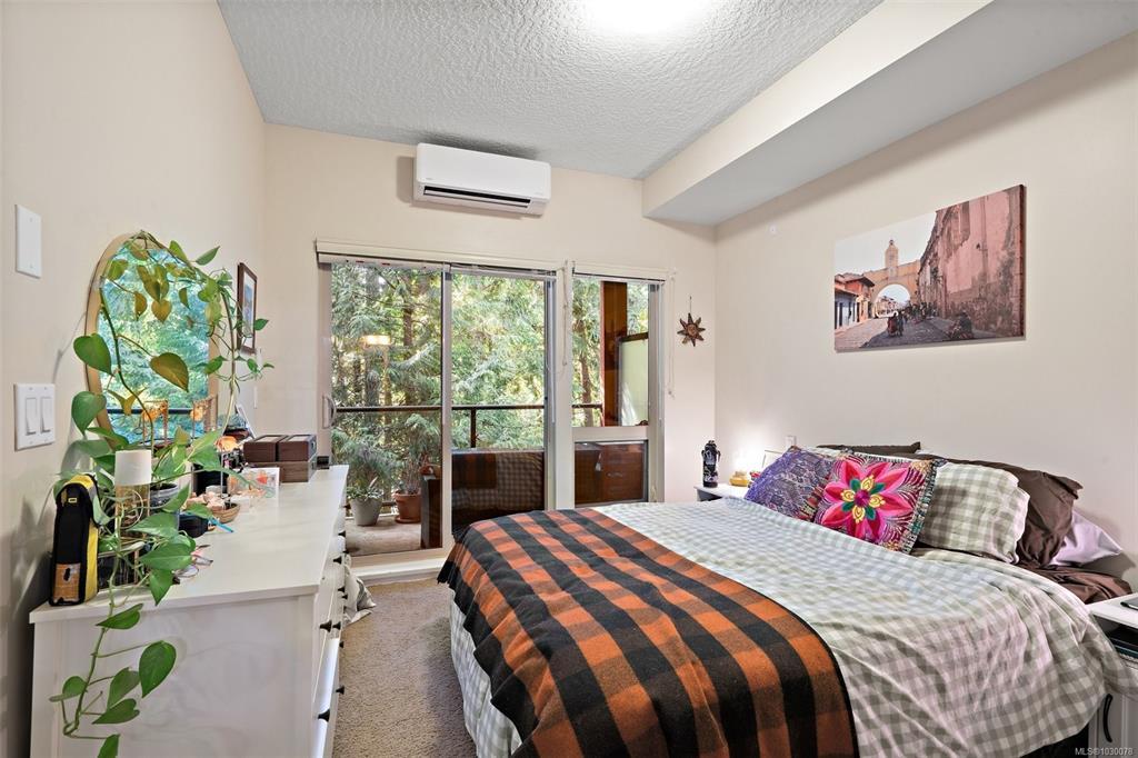 Welcome home...Don't miss this bright, spacious, south facing 1 bed 2 bath unit . Features include, maple shaker cabinets, quartz countertops, in suite laundry, covered deck, storage locker and secure underground parking and a heat pump. On the quiet side of the the building overlooking a forested walkway. Steps to Red Barn, pharmacy and Olympic View Golf Course. A short drive away is Westshore mall, Royal Bay and the beach. Well run proactive strata Don't miss the opportunity to view this great property