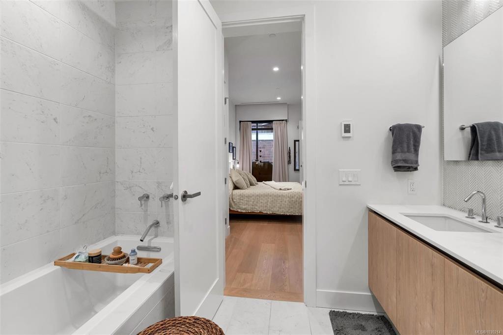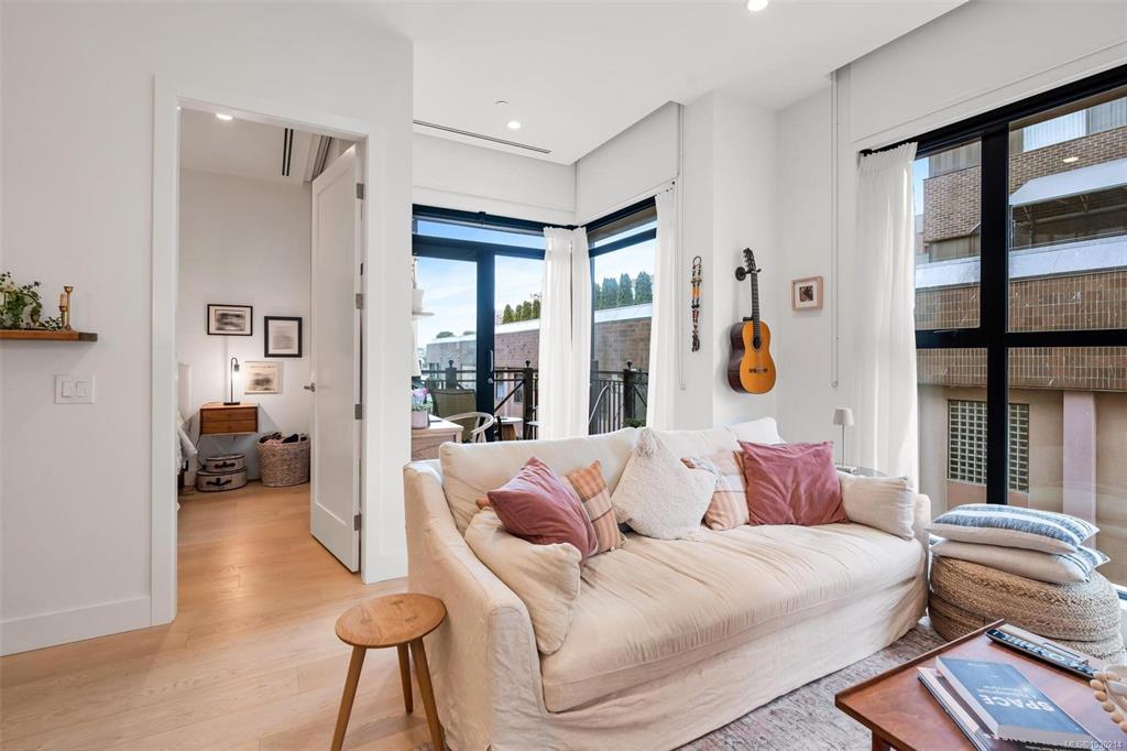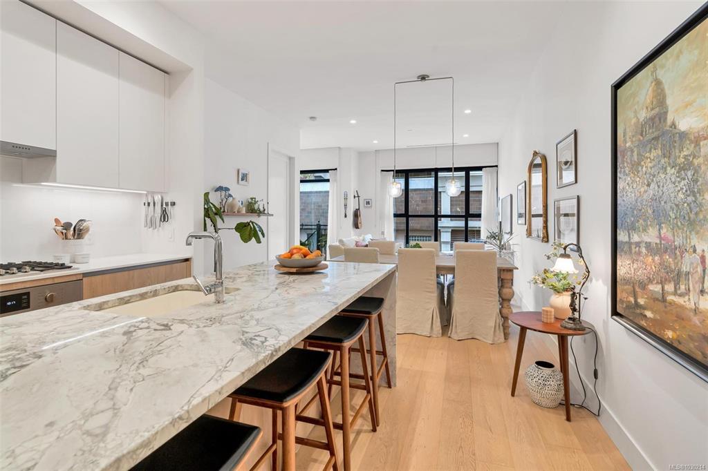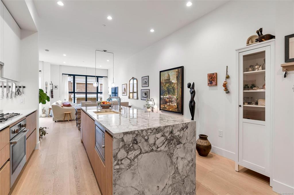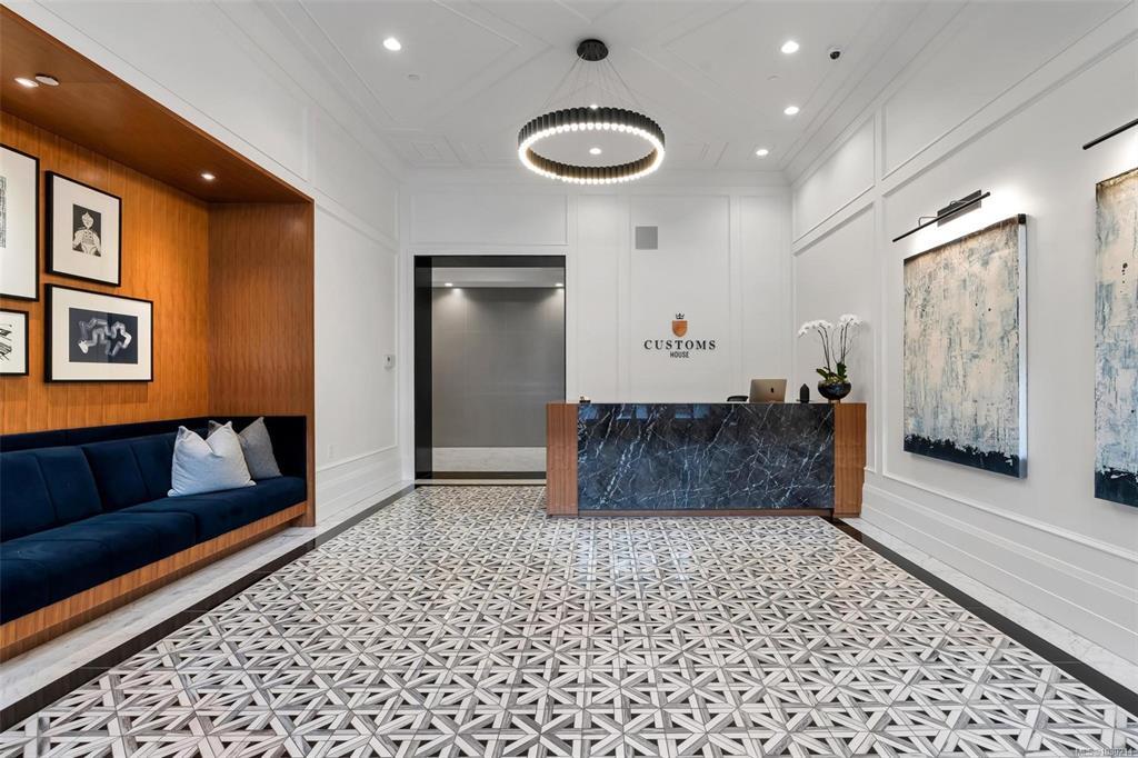 Welcome to Customs House—one of Victoria’s most iconic and luxurious residences in THE MOST COVETED location. This elegant 2 bed, 2 bath home offers 1,132 sqft. of refined living with soaring 10’ ceilings and wood wide plank floors. The spacious great room is filled with natural light from oversized windows, while the Italian-designed kitchen impresses with integrated Bosch appliances, quartz countertops, a gas range, wine fridge, and built-in espresso machine. A bright office off the living room enjoys a views of the Inner Harbour — ideal for work or relaxation. The primary suite includes a walk-in closet and a 5-piece ensuite with heated floors and double vanity. The second bedroom sits beside the main bath for added privacy. Enjoy relaxing on the West exposed and water view balcony. Customs House offers exceptional building amenities: a state-of-the-art gym with yoga room, sauna, and steam room, plus concierge service, car wash station, and secure parking. Pets and rentals permitted