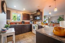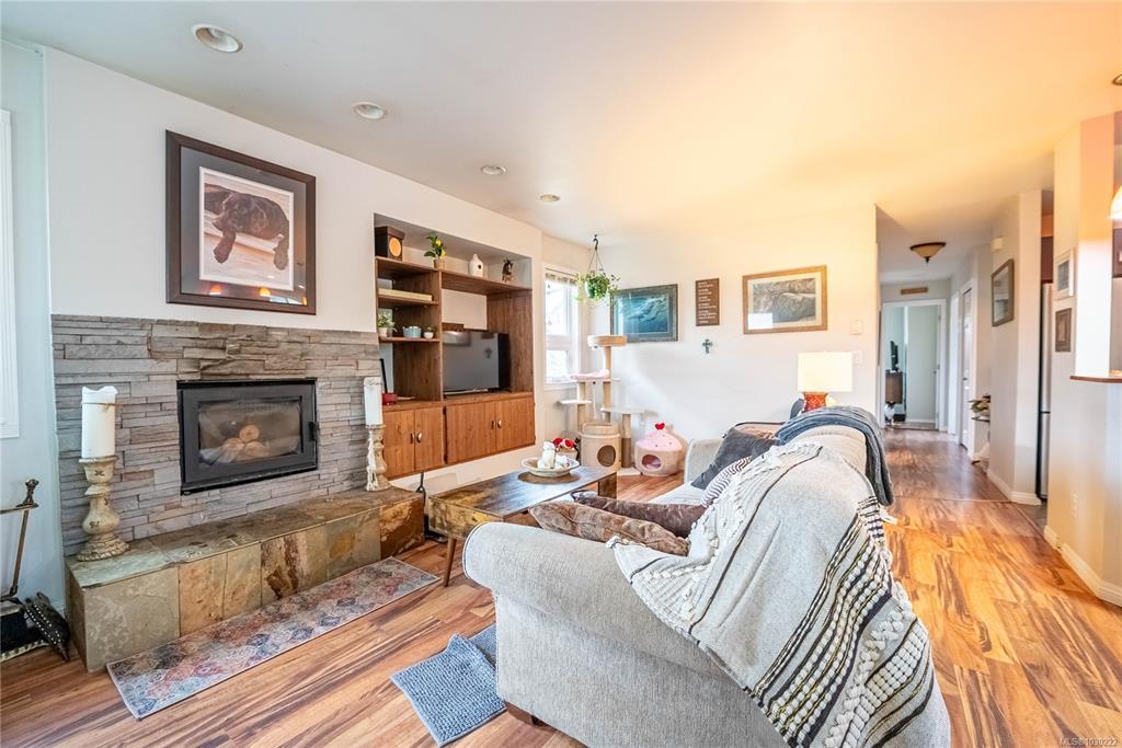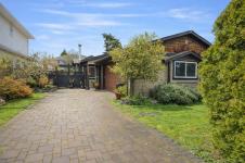 Welcome to 9960 Swiftsure Place, a charming single-level home in a quiet residential setting. This well-maintained property offers over 1,100 sq. ft. of thoughtfully designed living space with a bright, open-concept living and dining area, warm wood floors, and a cozy fireplace. The kitchen features ample cabinetry, workspace, and a handy pass-through to the dining area. There are 2 bedrooms plus a versatile office, ideal for remote work or guests. The primary bedroom includes an ensuite and walk-in closet, while the second bedroom sits near the main bath. Enjoy multiple patios and a private, fully fenced backyard with mature landscaping—perfect for relaxing or gardening. A double garage and extra driveway parking add convenience. Located just steps from Beacon Avenue, shops, dining, parks, and the waterfront, this home offers easy Sidney living.