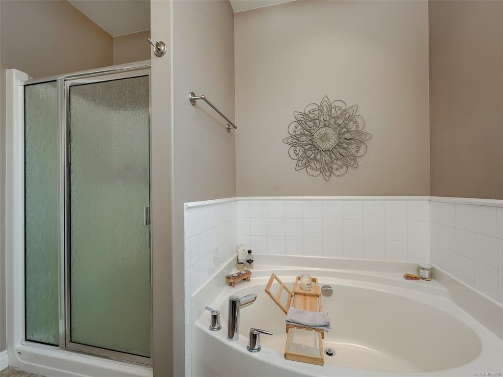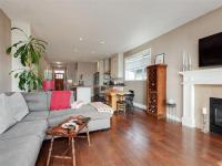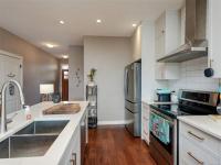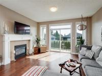 Fantastic level-entry home featuring a sought-after primary bedroom on the main, ideal for downsizers or families. The bright, updated kitchen flows into the open-concept living and dining area with abundant natural light, a cozy gas fireplace, and access to a sunny balcony—also enjoyed from the spacious primary retreat. The primary suite offers a walk-in closet and a spa-inspired ensuite with soaker tub and separate shower.