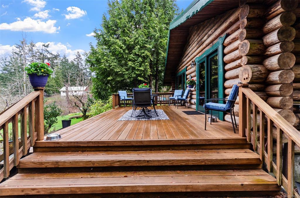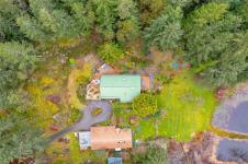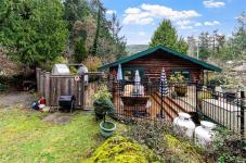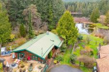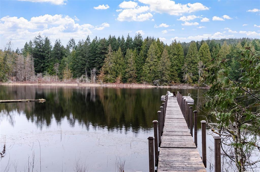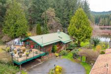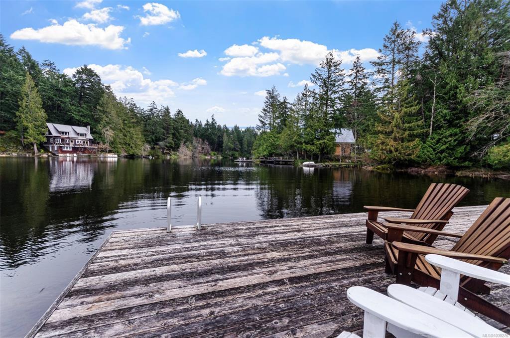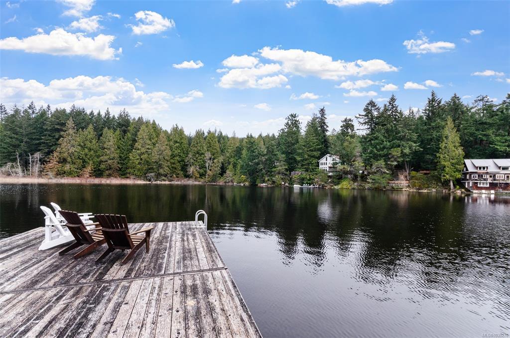 On a peaceful 1.87-acre lot on Fork Lake, this high quality home offers a unique nature-surrounded lifestyle. Down a quiet drive beside Mount Work Park, it’s one of Victoria’s best-kept secrets—just 30 mins to downtown, 15 to Millstream shops. Shared by 17 homes, the spring-fed, 10-acre lake has no public access or motorboats—just birdsong & rippling water. Swim, paddle, relax on your dock, or hike scenic trails. The updated 3-bed, 3-bath home blends log-cabin charm w/ modern touches: 2 gas fireplaces, heat pump, granite counters, custom cabinets, Pella wood windows/sliders, skylights, metal roof, hot tub & 1,425 sq. ft. of deck. Lower level is nearly finished w/ gas & electric roughed-in for a suite kitchen. Outside: landscaped yard, mature trees, garden & seasonal pond—great for winter skating. Ideal as full-time home or getaway, this lakeside retreat offers comfort, privacy & year-round outdoor living.