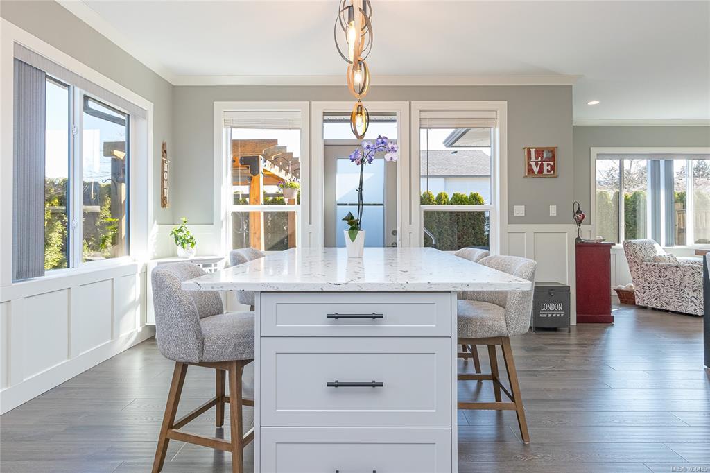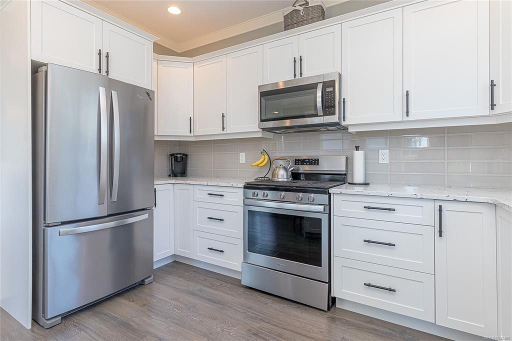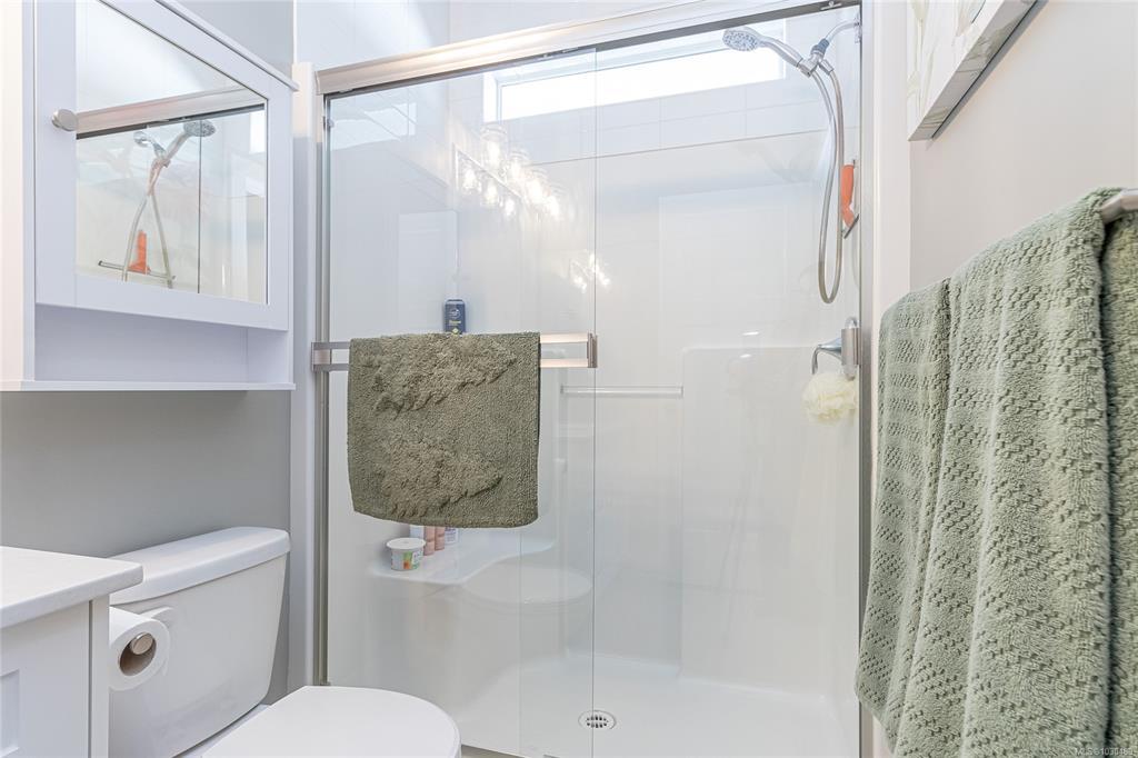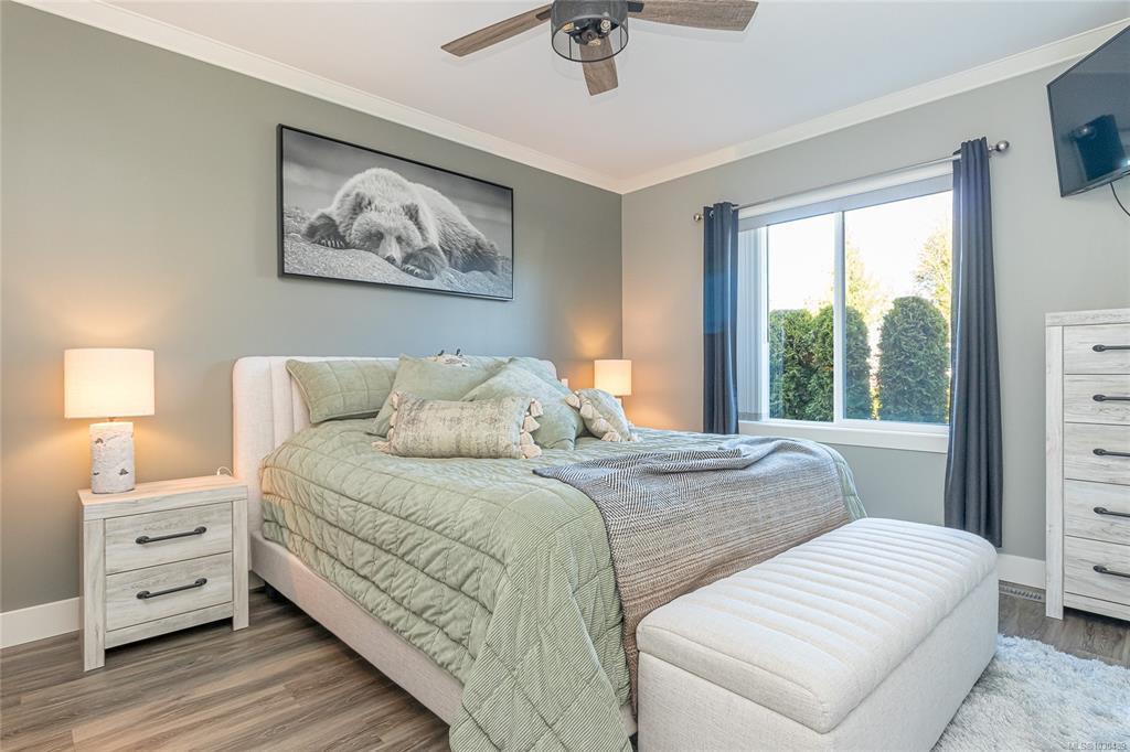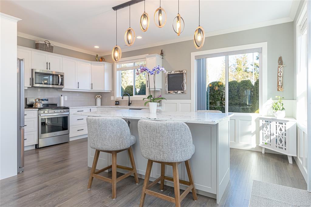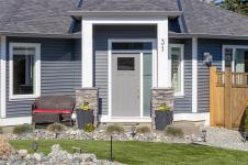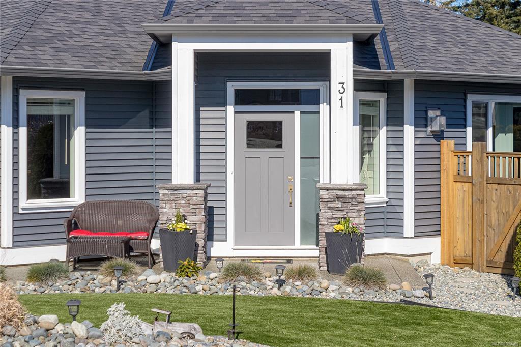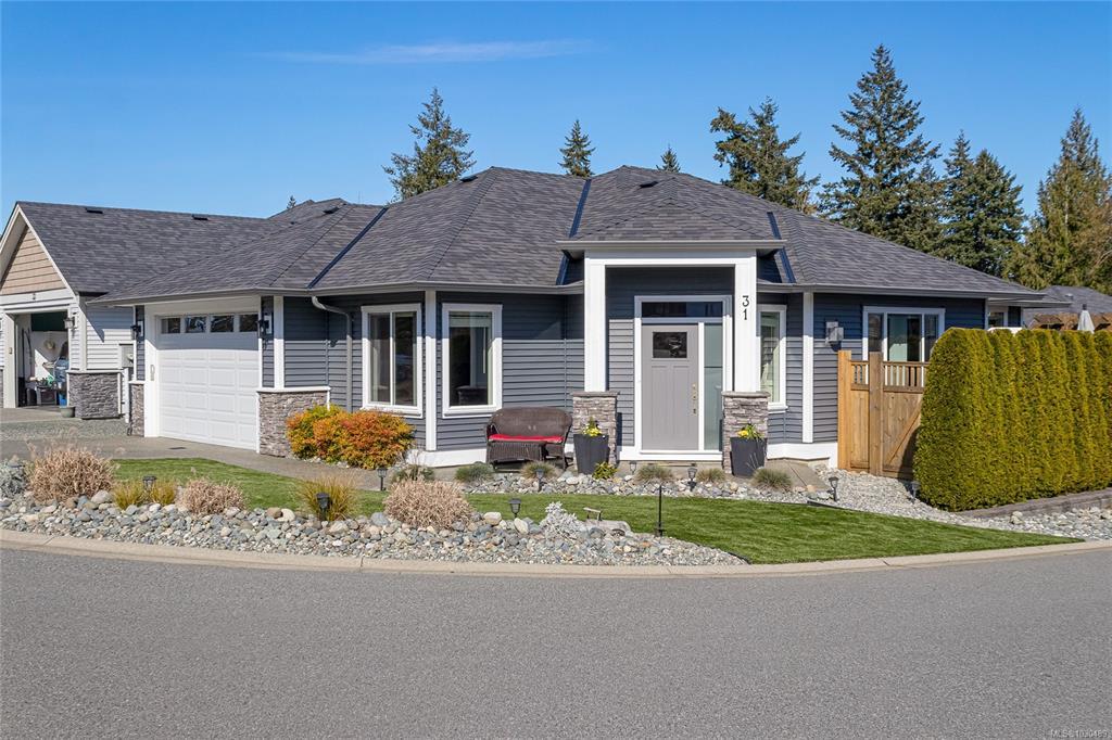 Welcome to Askew Creek Drive, just minutes from the adorable seaside town center of Chemainus on central Vancouver Island. Discover effortless island living in this better-than-new, upgraded 2 bed + den, 2 bath low-maintenance rancher. Thoughtfully designed for an easy lock-and-leave lifestyle, this 2018-built home offers over 1,400 sq ft of accessible single-level living with a bright open-concept plan, cozy gas fireplace, central A/C, and double attached garage. Enjoy a private yard with natural gas BBQ hook-up, stamped concrete patio, hot tub, and cedar pergola. Upgrades include quartz counters throughout, a huge custom eat-at island with built-in storage, luxury vinyl plank flooring (no carpets), upgraded lighting, and a fully finished garage. Located in a quiet cul-de-sac in a well-run bare land strata with low $143/month fees (incl. management, garbage/recycle, and water), it’s an excellent option for off-island buyers or locals seeking a worry-free Vancouver Island home.