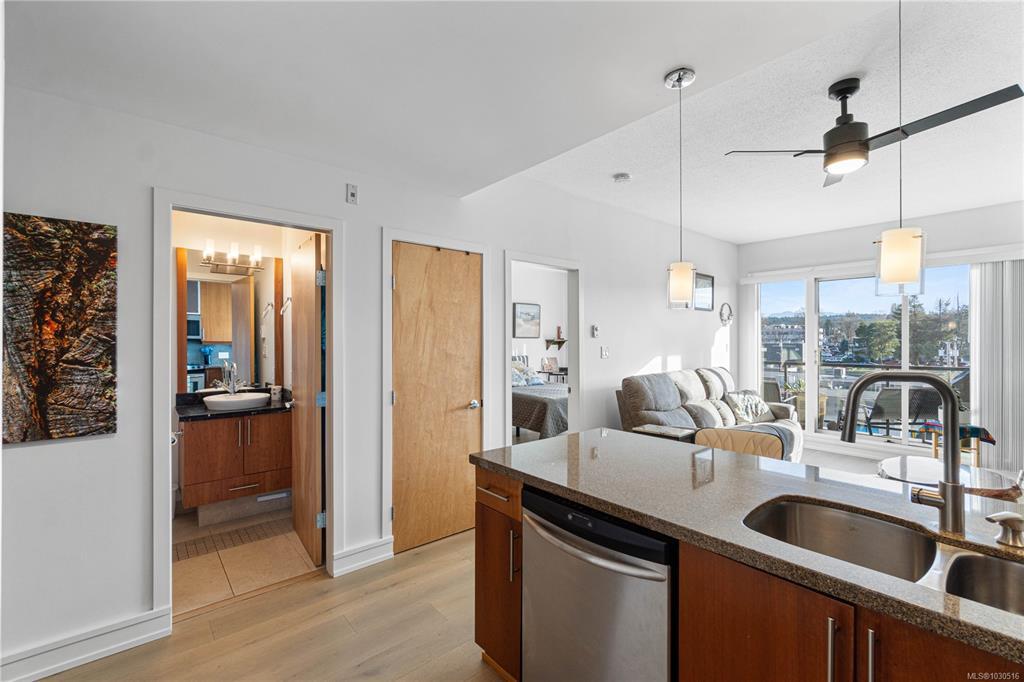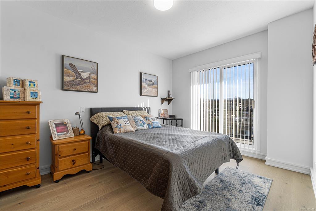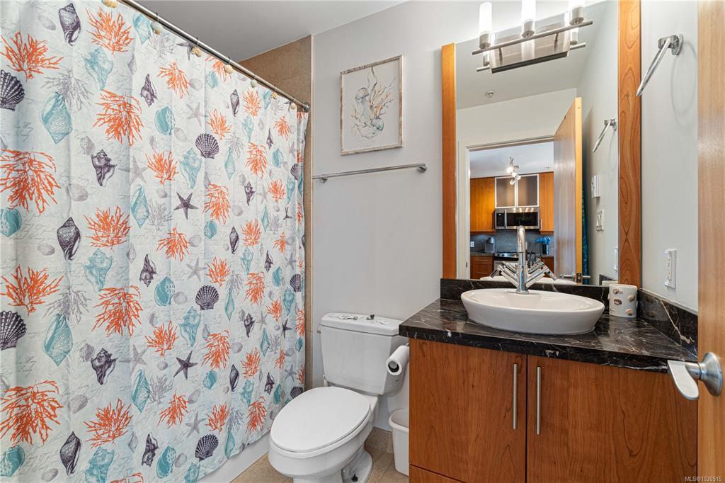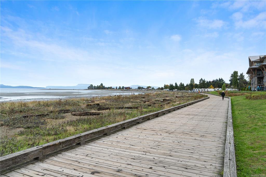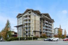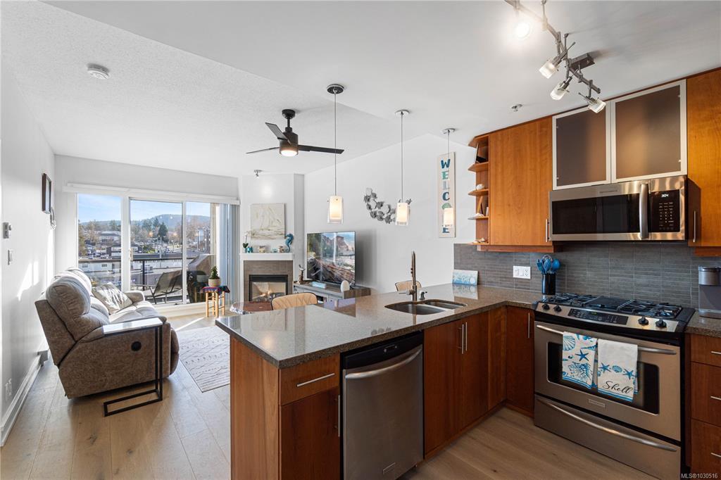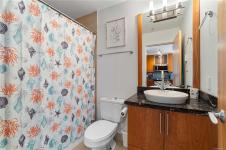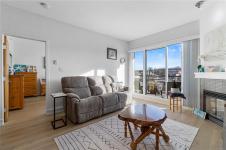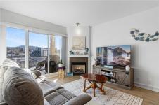 Designed for comfort and style, this sophisticated 6th floor home showcases sweeping mountain views and sun-filled southern exposure, enjoyed from expansive windows and a spacious private balcony. The thoughtfully designed layout features a generous bedroom complete with walk-in closet and direct balcony access. The kitchen and bathroom are appointed with polished granite countertops, while engineered hardwood flooring flows through the entry, kitchen, and living areas. The bathroom offers in-floor radiant heating for added everyday luxury. With 9-foot ceilings, a cozy gas fireplace, and a convenient gas BBQ hookup on the balcony, this home perfectly blends elegance and practicality. Residents enjoy exclusive access to premium amenities, including a fully equipped gym, indoor pool, hot tub, and sauna. Just steps from the beach and within easy walking distance to shops and restaurants, this concrete and steel building offers an unbeatable combination of luxury, location, and lifestyle.