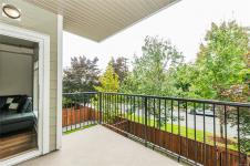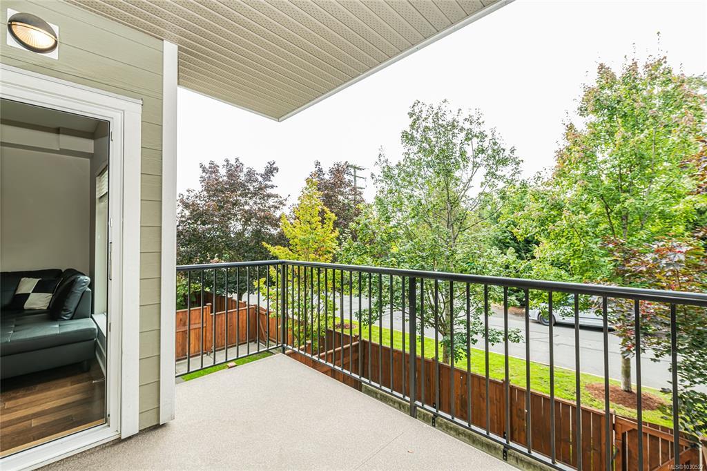 Experience the perfect balance of style and serenity in this bright, meticulously designed 1-bedroom residence. The open-concept interior boasts rich hardwood floors and a gourmet kitchen featuring sleek granite countertops, premium stainless steel appliances, and abundant cabinetry. Beyond the aesthetics, this home is engineered for comfort. Enjoy the quiet of custom soundproofing and the consistent warmth of geothermal radiant in-floor heating. The thoughtful floor plan offers a true sanctuary with a large primary bedroom and a private 4-piece ensuite, complemented by a separate powder room for guests. Step outside to your massive southwest-facing patio, an expansive outdoor retreat perfect for morning coffee or golden-hour entertaining. Situated steps from the Galloping Goose Trail, Eagle Creek Shopping Centre, and Victoria General Hospital, this pet and rental-friendly home includes secure underground parking and a heated storage locker. Heat and hot water included in strata fees.