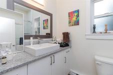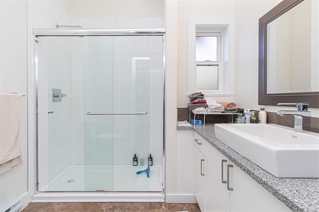 Neat as a pin! This up & down duplex has it all. 2 beds 2 baths down with modern kitchen, in-suite laundry and sunny private patio. Enter through private entrance to upstairs where you will find a bright and sunny 1 bed 1 bath with vaulted ceiling, in-suite laundry, bonus office space and south facing deck. The flexible floorplan allows for many opportunities, live in one, rent the other or multi-generational living, each with their own private space. Added bonus, its already framed for private elevator! Easy 5 minute stroll to parks, the beach, Beacon Ave and all Sidney has to offer.