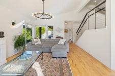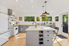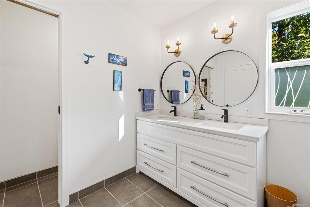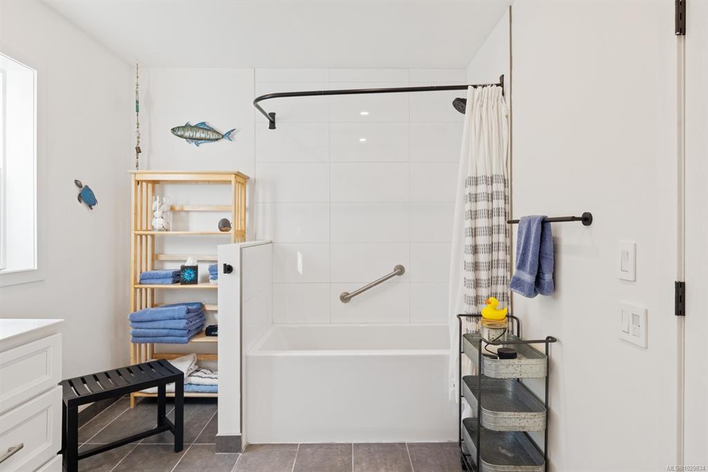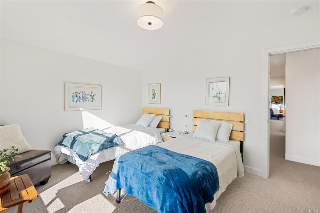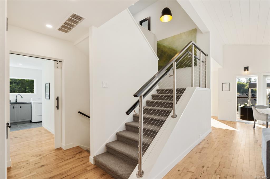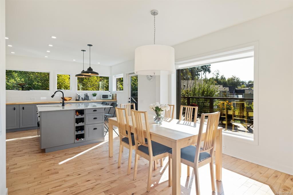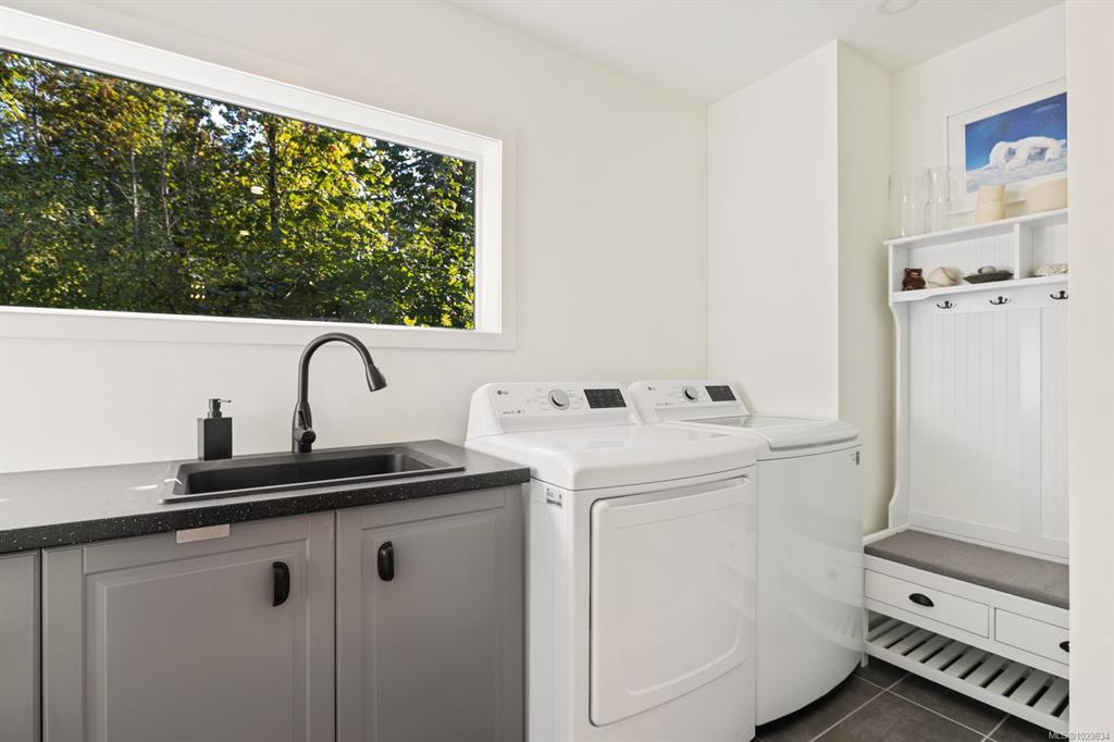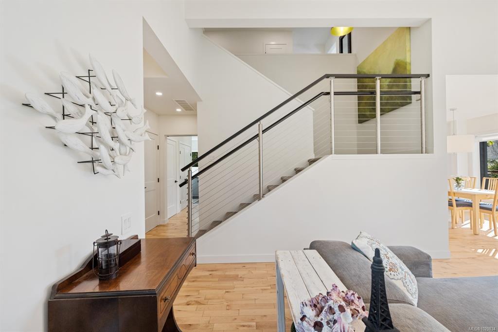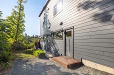 The covered entrance welcomes you into this architecturally designed home. The Vaulted living room is filled with natural light that creates a wonderful, welcoming space. Flowing through the dinning room, with its huge picture window to the Kitchen. The kitchen features butcher block counters, a large central island and access to the entertainment sized rear patio. This west facing patio overlooks the fully fenced back yard, with fruit trees and very productive garden beds. The entire south side of property runs along a natural green space. The spacious primary bedroom is a relaxing space with a private roof-top patio, as well as a 4 pcs ensuite and walk-in closet. There are two additional bedrooms on this level, complemented by a 5 pcs bath. Downstairs has a separate entrance to a complete one-bedroom unit that makes the perfect Airbnb or mortgage helper. This is an excellent home is a highly desirable Cowichan Bay neighbourhood.