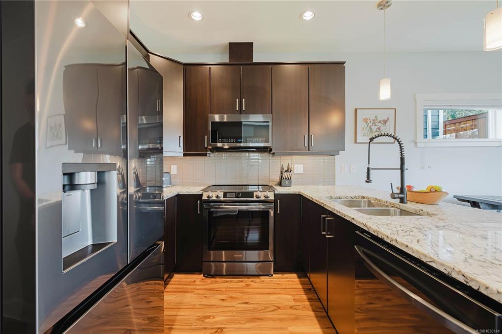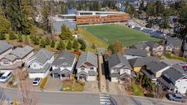 Welcome to 3087 Alouette, a bright and modern 3-bedroom home backing on to green space & Belmont Secondary School in the distance beyond. This beautiful home features an open concept main floor with 9-foot ceilings and an abundance of windows that let in natural sunlight. On the main you will find a spacious living room, a 2-pc. powder room, separate dining area and an open kitchen featuring granite counters & newer S/S appliances. Step outside to the walk-out patio and a large, flat, fully fenced backyard yard overlooking the athletic field of Belmont Secondary School. Upstairs are 3 large bedrooms, 2 full bathrooms & a spacious laundry room. The curb appeal is stunning as the exterior of the house has recently been painted and you'll love the single car garage and the double-wide driveway. Also, this home is just minutes away from an array of amazing amenities including Glenwood Meats, Glen Lake Park, Goudy Field, City Center Park, YMCA rec center, Westhills Stadium, and Tim Hortons.
