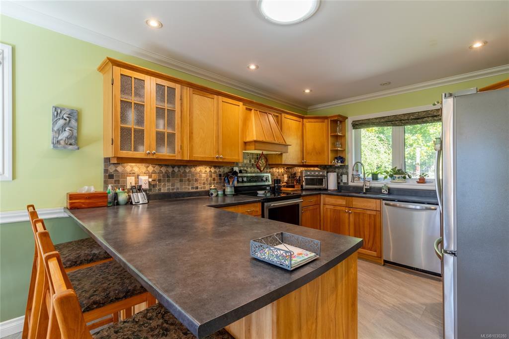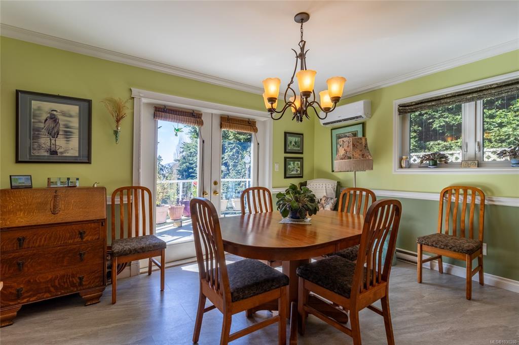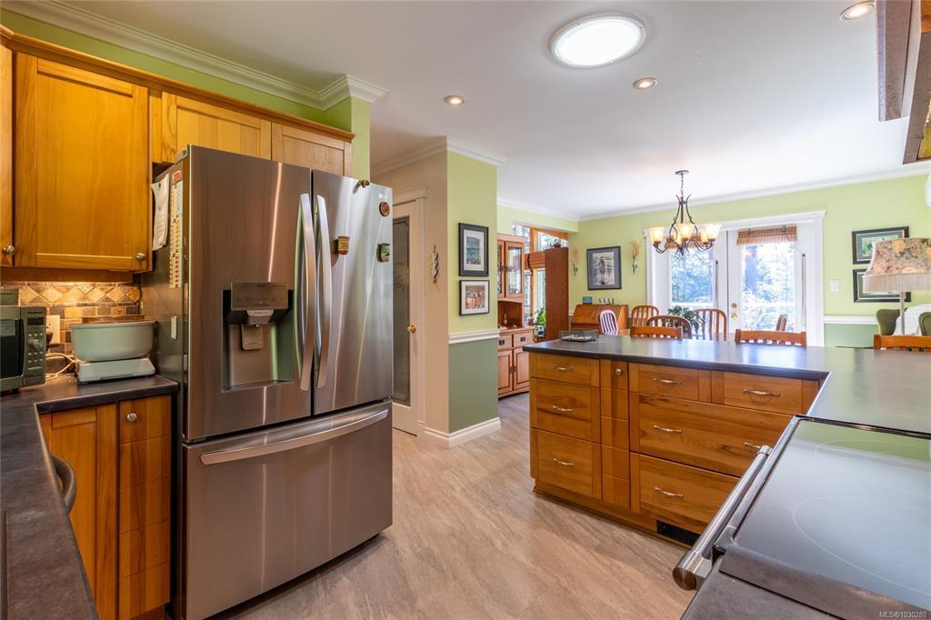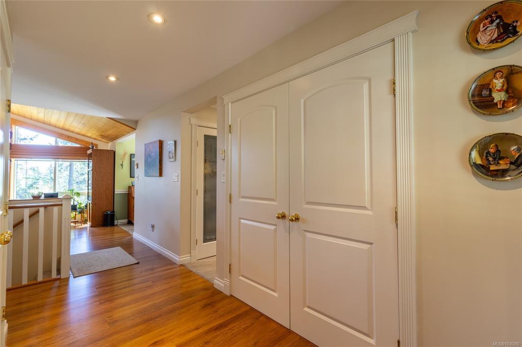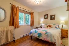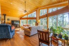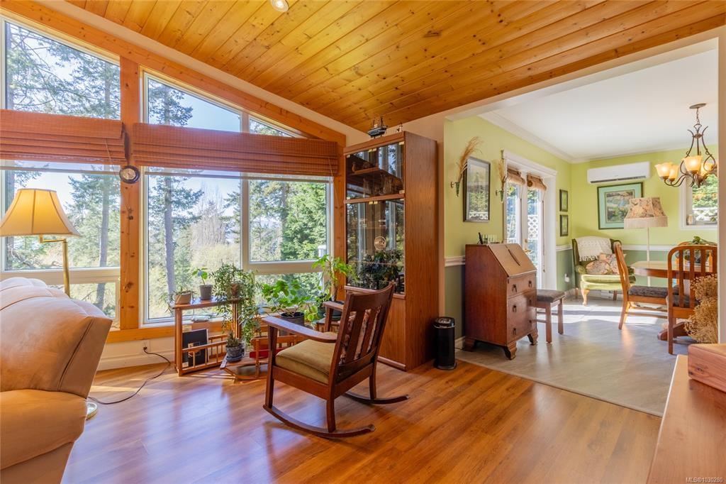 South-facing West Coast–style home on a private 0.55-acre lot, a short walk from Thieves Bay Marina and Park. Built in 2004, this custom Viceroy kit home offers quality construction, vaulted wood ceilings, large windows, and a durable 40-year fiberglass shingle roof. The main level provides three bedrooms including a primary bedroom with ensuite and private balcony. Abundant natural light fills the interior, with small ocean glimpses from several rooms. A daylight basement with exterior access includes a large family room and additional unfinished space suitable for future development, workshop, studio, or suite. The owners have continuously updated the home over the years with exterior painting, appliances, flooring & countertops and a new heatpump last year. Serviced by Magic Lake water system and on septic. Quiet setting close to moorage, parks, trails, whale watching, and local recreational amenities. Current bylaws permit an accessory building. Information package available.