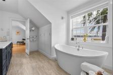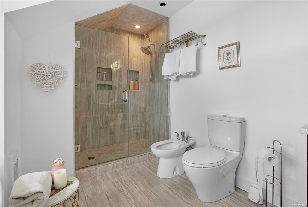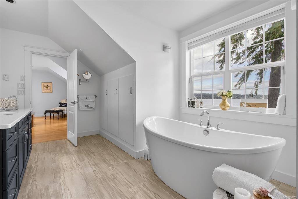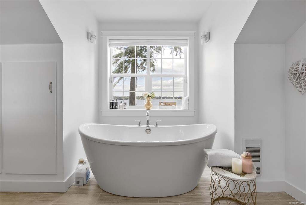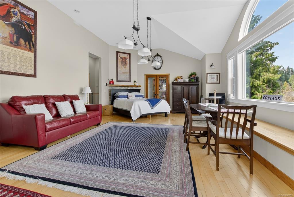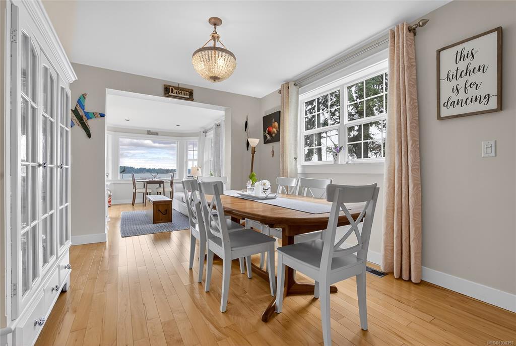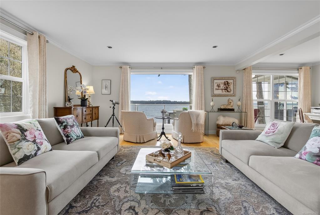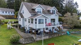 Nestled along the sun-kissed shores of Ladysmith, BC, this oceanfront estate offers a blend of natural beauty & refined living. Set on a private 0.62-acre lot with numerous gardens, a greenhouse, & even a palm tree, the property invites you to slow down & savour the coastal lifestyle. Walk directly to the water from your own patio seating area, or unwind on one of seven distinct outdoor spaces-from the BBQ deck & firepit patio to the serene Orca deck set at the water's edge. Inside, maple hardwood floors, crown moulding, & a fir staircase speak to timeless craftsmanship. The chef's kitchen features quartz counters, a propane range, & an island for three, flowing effortlessly into dining & breakfast rooms with sweeping ocean views. The primary suite offers a walk-in closet w/built-in cabinetry & a spa-inspired bath w/pedestal tub, dual sinks, & bidet. A fully equipped detached guest cottage w/fireplace, sauna & a workshop w/woodstove & skylights complete this one-of-a-kind offering.