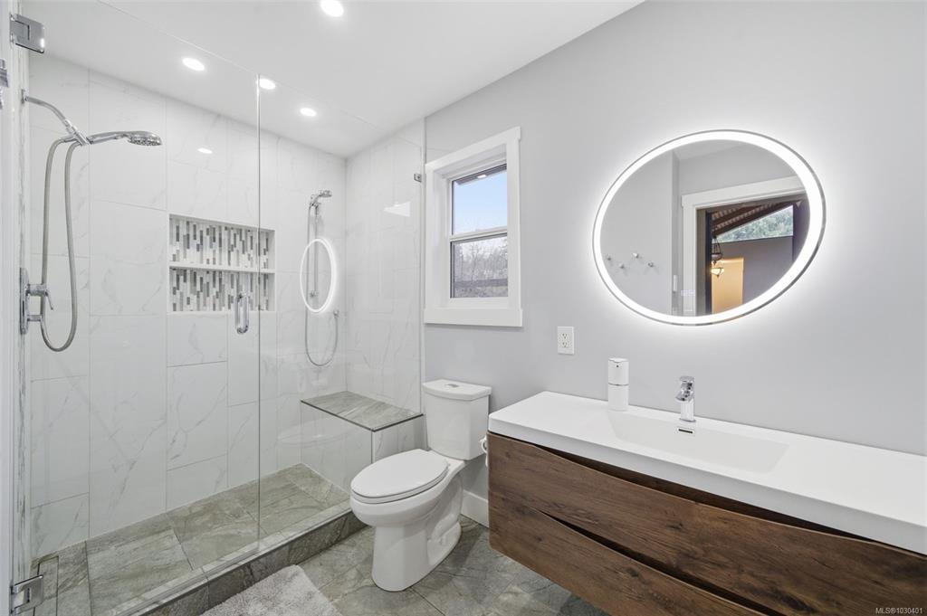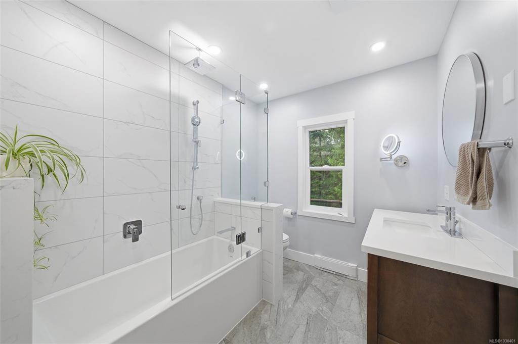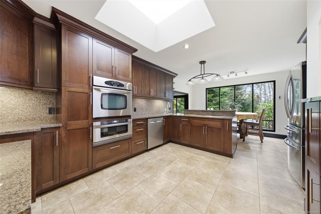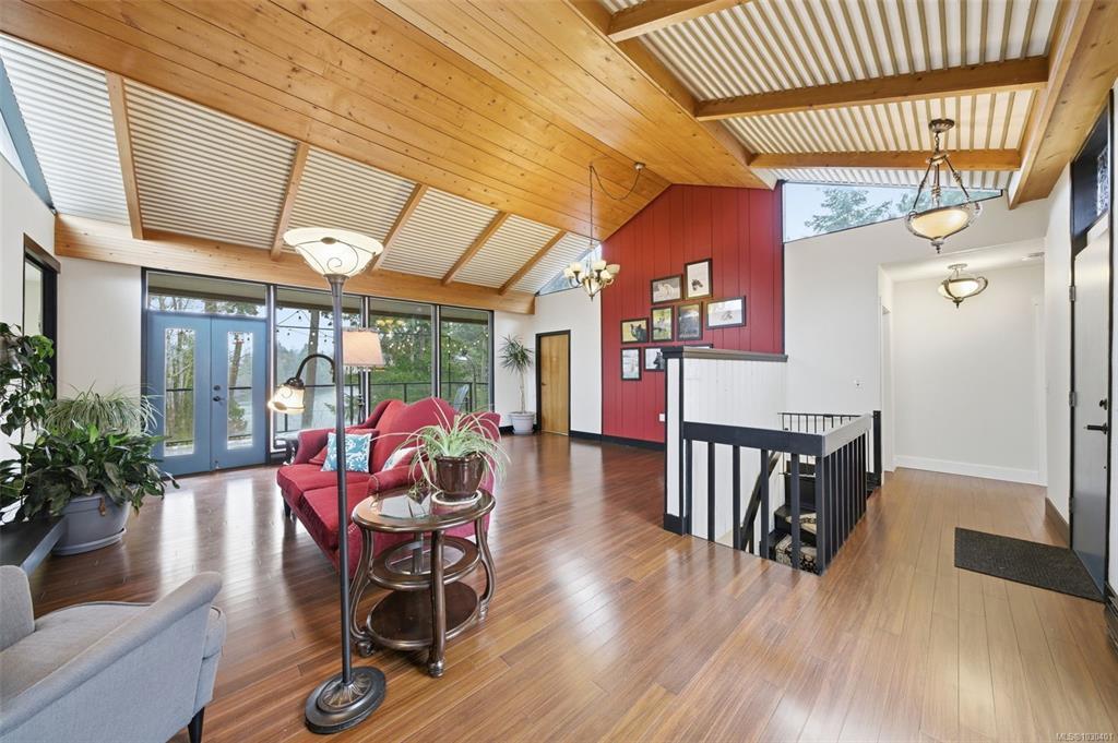 Incredible waterfront opportunity in the heart of View Royal. The main house offers flexibility with 3 beds, two office / den areas, 2 rec rooms, a workshop, and is set on a rare 0.805 acre lot on a quiet no-through street. Featuring vaulted ceilings & expansive windows, the home is filled with morning light and offers beautiful water views along with the most peaceful forest surroundings. The gourmet kitchen includes SS appliances, granite countertops, heated floors & generous cabinetry. Hardwood floors run throughout, complemented by a cozy wood-burning fireplace & a gas fireplace. Both bathrooms and the balcony have been updated within the past two years. The property features extensive outdoor spaces with interlocking brick patios and walkways and space for an RV & tonnes of parking. There is also a pool on site that is currently decommissioned but offers potential to be restored and enjoyed. Huge bonus is the detached one-bedroom 1 bth cottage suite, quick occupancy avail.