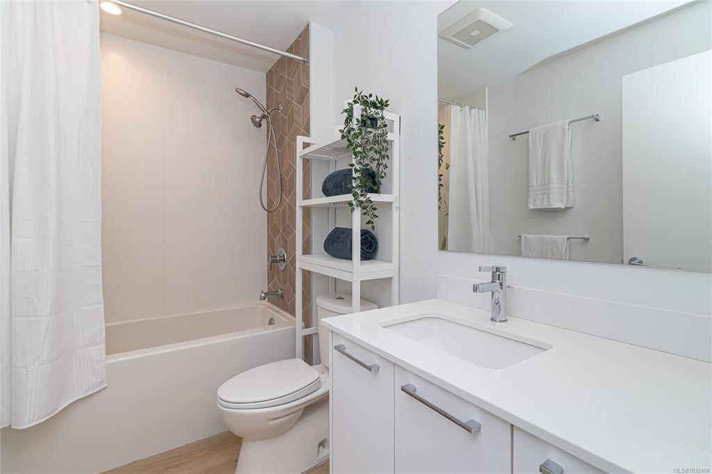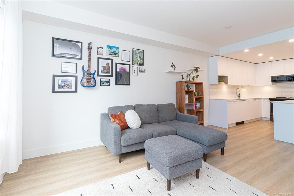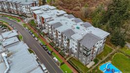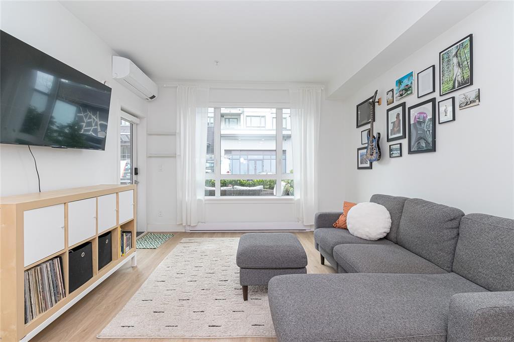 OPEN HOUSE Sat Apr 4 | 11–1 Welcome to modern, easy living in the heart of Langford! This stylish 1bd, 1bth ground-floor condo offers open-concept layout designed for comfort & convenience. The sleek kitchen has generous counter space, perfect for entertaining, while the spacious patio extends your living outdoors—ideal for morning coffee or evening wine. Ground-floor access allows for seamless indoor-outdoor living with no elevators. An efficient heat pump keeps things cool in summer & cozy in winter. Enjoy fantastic amenities including a community lounge w/kitchen, outdoor patio & BBQ, pet wash, workshop, bike repair station, & exclusive access to the Belmont Club w/entertaining space, music room, kids’ play area & art studio.Pet-friendly (2dogs or 2 cats, no size limit—rare!), rentable, w/secure underground parking, dog wash, storage locker & bike storage. Steps to groceries, shops, cafés, restaurants, parks & Galloping Goose Trail—this is lifestyle living at its best!