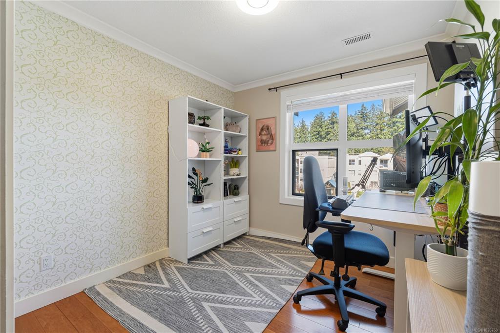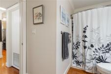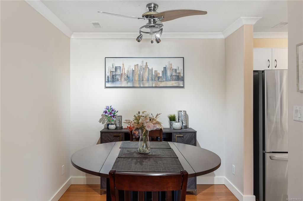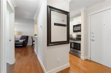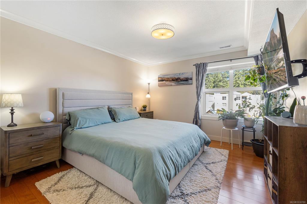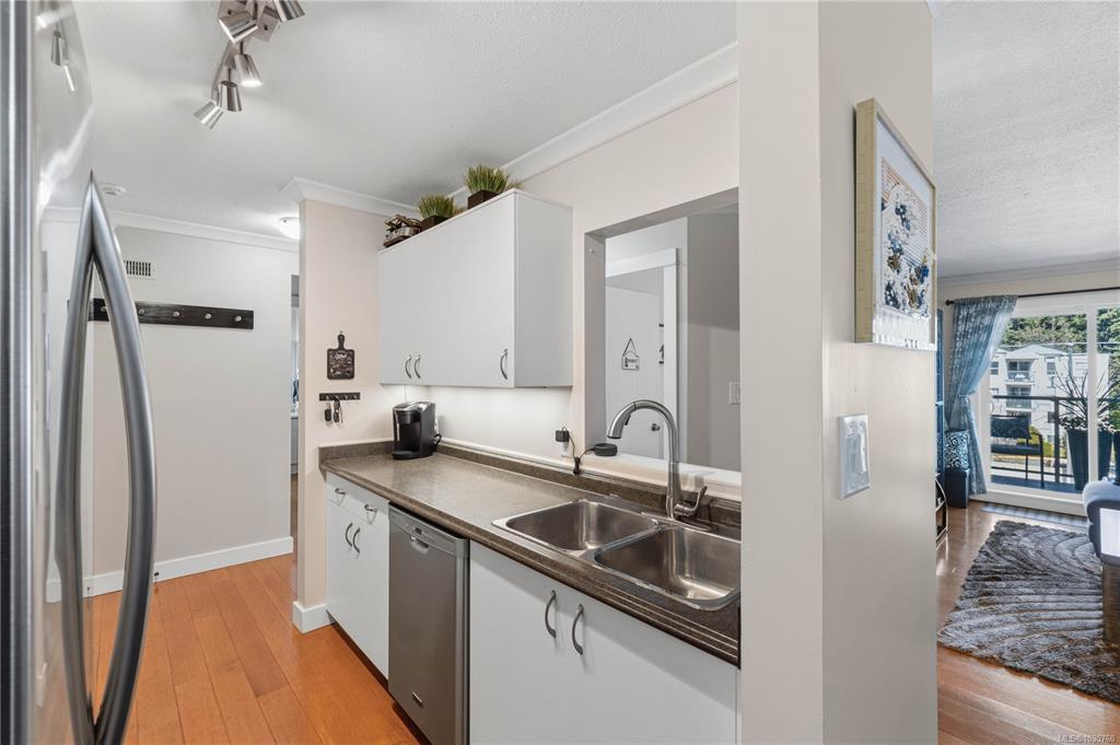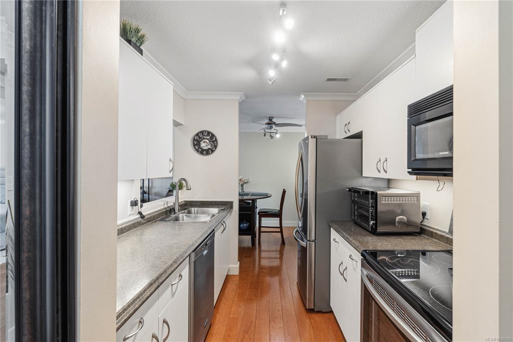 Top floor 2 bed, 1 bath condo in the desirable Rutherford Heights property, offering a strong balance of space, location, and monthly affordability. Walk to North Town Centre, Oliver Woods recreation, Longwood Brew Pub, and everyday amenities. This well-maintained unit features a functional layout with a cheater ensuite, offering access from both the primary bedroom and main living area, spacious primary bedroom with walk-through closet, and a bright living area that opens to a private balcony. The kitchen includes updated stainless steel appliances and connects easily to the main living space. In-suite laundry and an efficient hot water heating system help keep operating costs predictable. Strata fee is well positioned compared to similar units, making this a practical option for buyers focused on overall monthly cost.