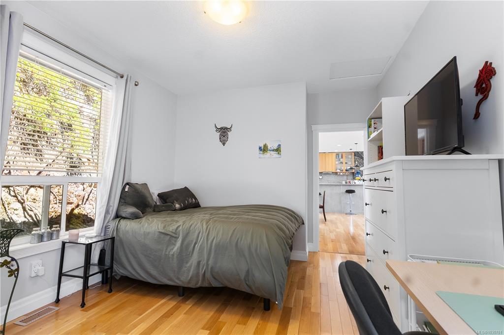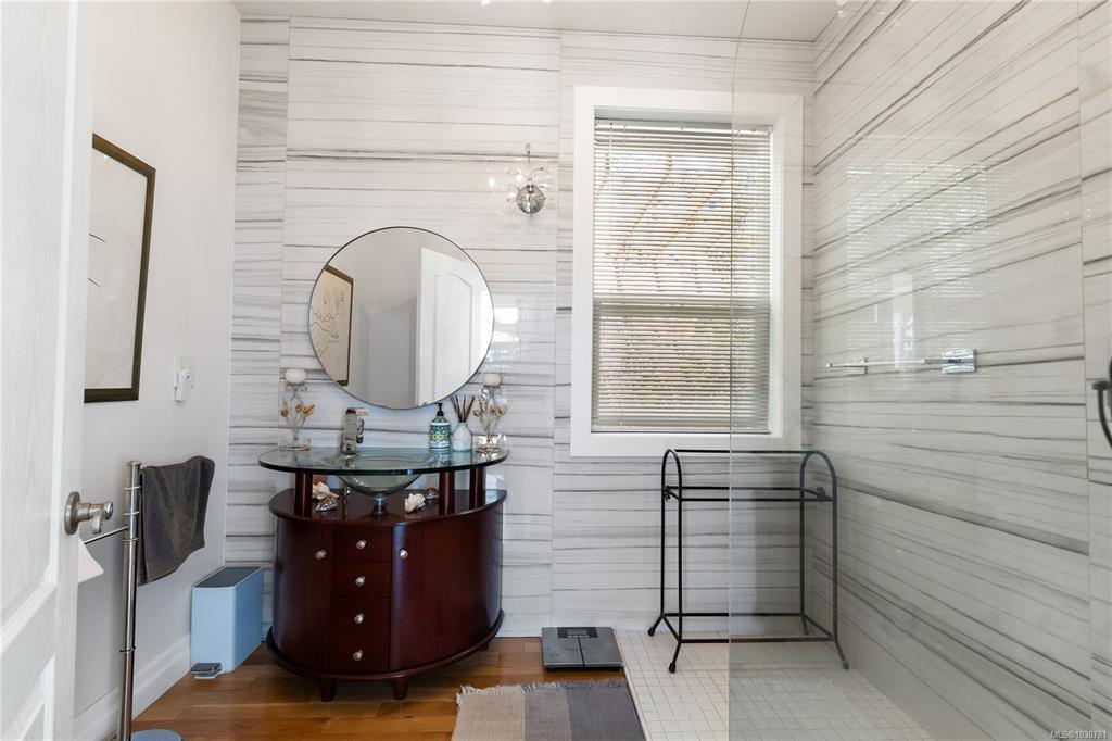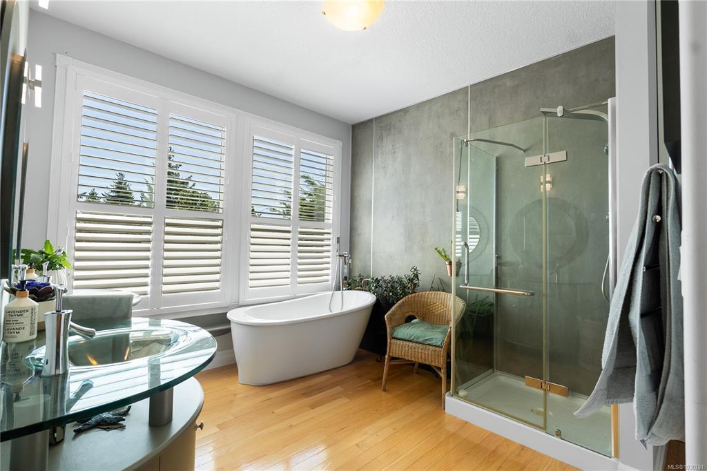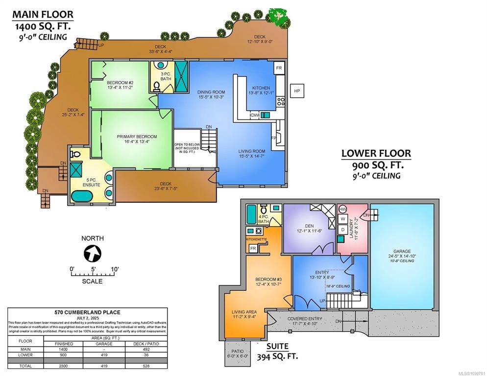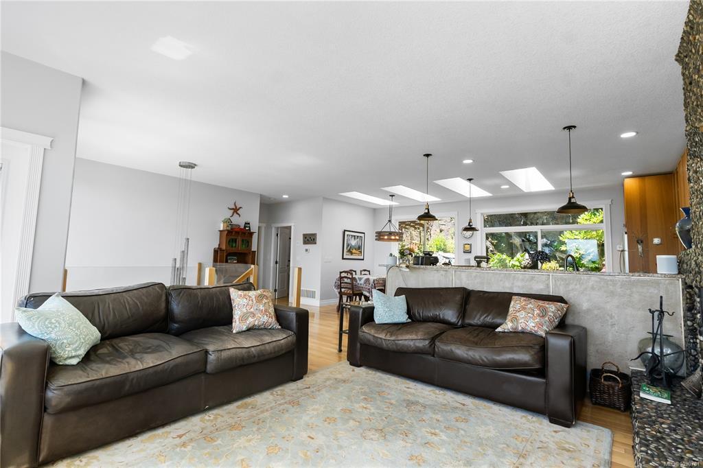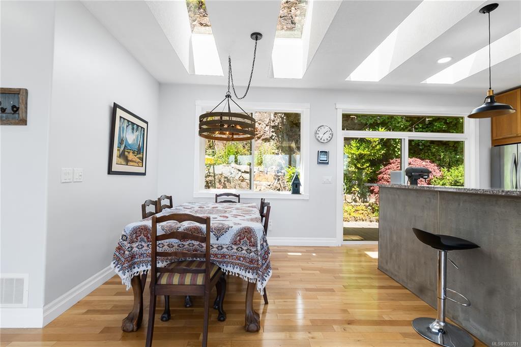 STUNNING OCEAN & MOUNTAIN VIEWS! This immaculate executive residence overlooks Departure Bay & features panoramic vistas and natural light. The gourmet kitchen offers oak cabinetry, granite counters, and a functional layout, while the elegant dining room with skylights opens to a rear patio. A cozy wood-burning fireplace and access to a south-facing deck highlight the living room. The spacious primary suite has a luxurious 5-pce ensuite & generous wardrobe. A 2nd bedroom with private patio and modern main bath complete the main floor. Downstairs features a vaulted entry, den, laundry room, and a beautifully appointed IN-LAW or GUEST SUITE with ensuite, kitchenette, and sitting area. With 2,300 sqft of finished space, composite decking, hardwood floors, and mature landscaping, this home is a rare find. The upper garden with fruit trees, gardens, and a spectacular view towards Vancouver includes a deck which is accessed by spiral staircase. Measurements approx.
