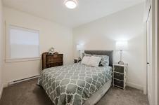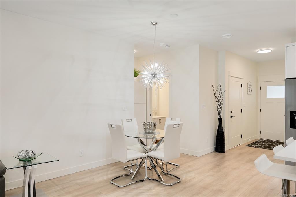 With peaceful forest views, main-level living, and a thoughtful layout, this nearly new home in Willing Park offers comfort, flexibility, and a welcome sense of calm. The open-concept main floor is bright and inviting, featuring a spacious kitchen with quartz counters, soft-close cabinetry, and stainless appliances. The living room, centered around a gas fireplace, opens to the deck and overlooks the fully fenced backyard. The primary bedroom on the main level includes a walk-in closet and an ensuite with double sinks and heated tile floors. A legal one-bedroom suite with a separate electrical meter adds valuable flexibility for extended family or rental income. An energy-efficient heat pump, on-demand hot water, and EV charger, support modern living. Complete with an attached double garage, covered patio, gazebo, gas BBQ hookup, and two storage sheds, while being close to schools, shopping, and Olympic View Golf Course. Reach out any time to arrange your private viewing.