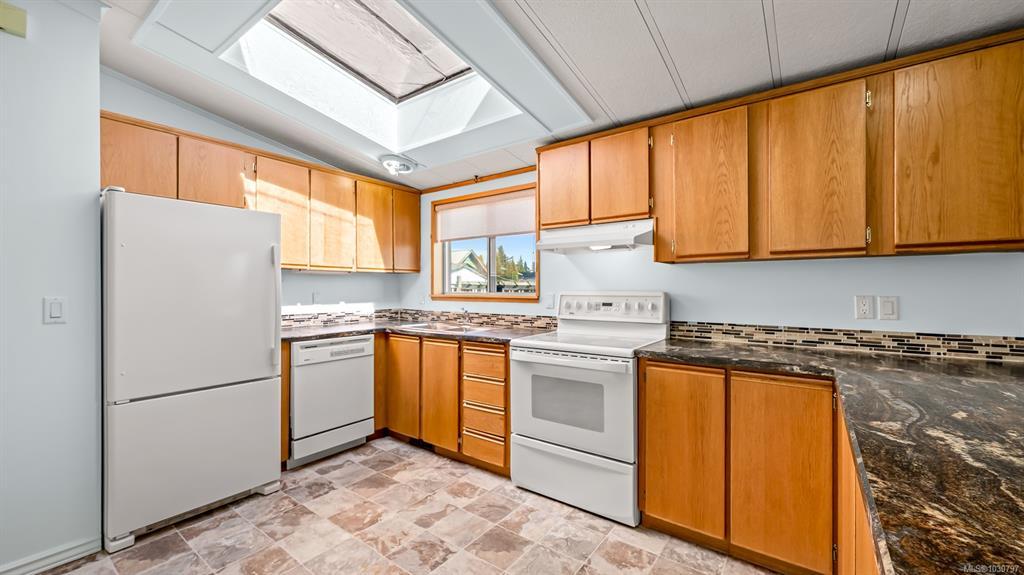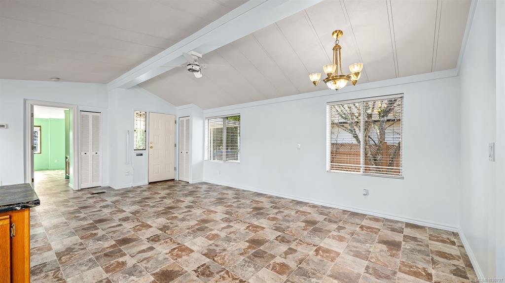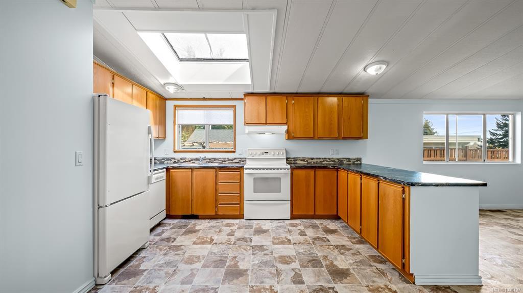 Move-in ready 3 bedroom home on its own freehold property! Tucked on a quiet street in an excellent Courtenay East neighbourhood, this affordable home provides over 1300 sq ft of bright living space, vaulted ceilings, and a primary bedroom with an ensuite. The wrap around yard is surprisingly private and has plenty of room to play plus a second driveway - perfect for your additional vehicle, RV, or boat. There's even a workshop off the back deck as well! Close to all amenities including groceries, North Island College, and all levels of good schools. Clean and freshly painted interior. Durable vinyl siding and a poured concrete foundation make this home a great long term investment.