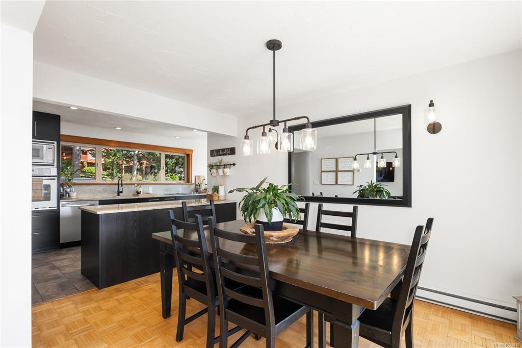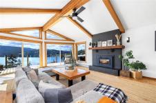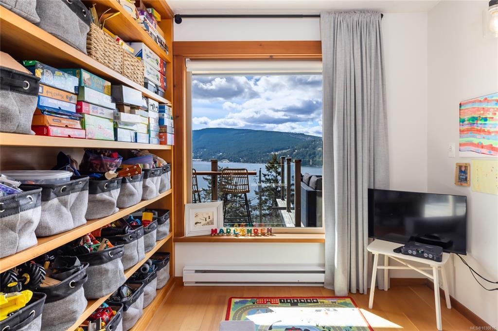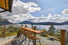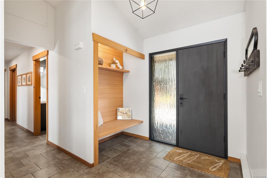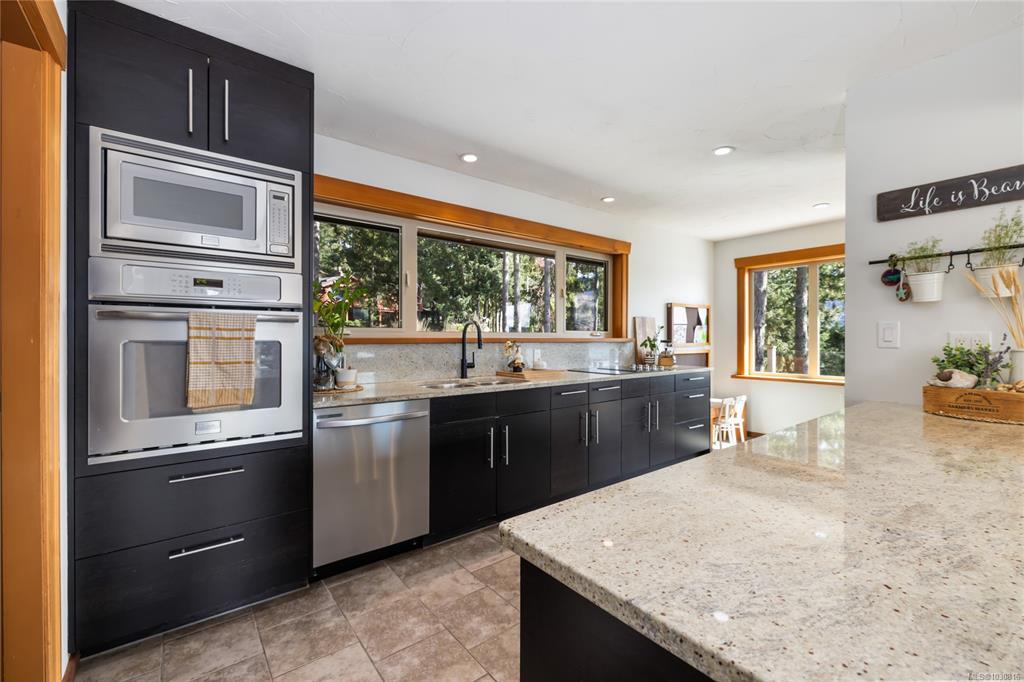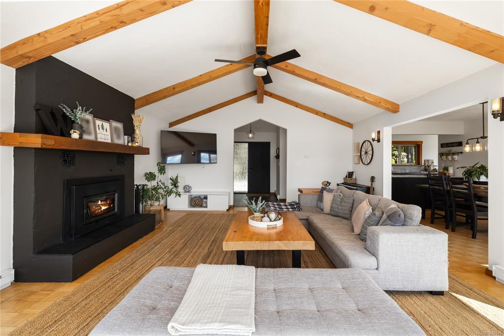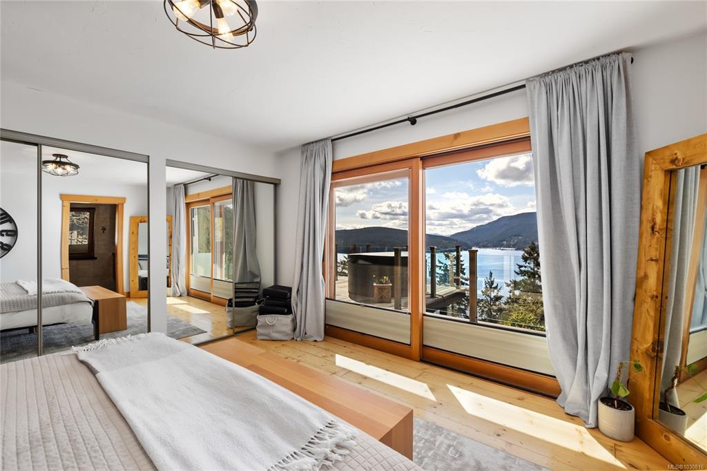 Welcome to 543 Bayview Place / Perched atop a natural rock outcrop in sought-after Maple Bay, this 1,737 sq. ft. oceanview rancher offers breathtaking, uninterrupted southern exposure with panoramic views from sunrise to sunset. Designed for comfortable single-level living, the home features vaulted beamed ceilings, floor-to-ceiling windows, and a bright, airy interior filled with natural light. A wood-burning stove efficiently heats the home, complementing warm wood and tile flooring. The kitchen boasts granite countertops, a walk-in pantry, and flows into a formal dining area ideal for entertaining. The private primary suite is positioned on the west side and enjoys stunning ocean views. Outdoor living shines with a 900+ sq/ft wrap-around deck, hot tub, and a beautifully landscaped 0.80-acre property with mature Fir and Arbutus trees. Complete with a 2-car garage and gated entry, this is West Coast living at its finest.