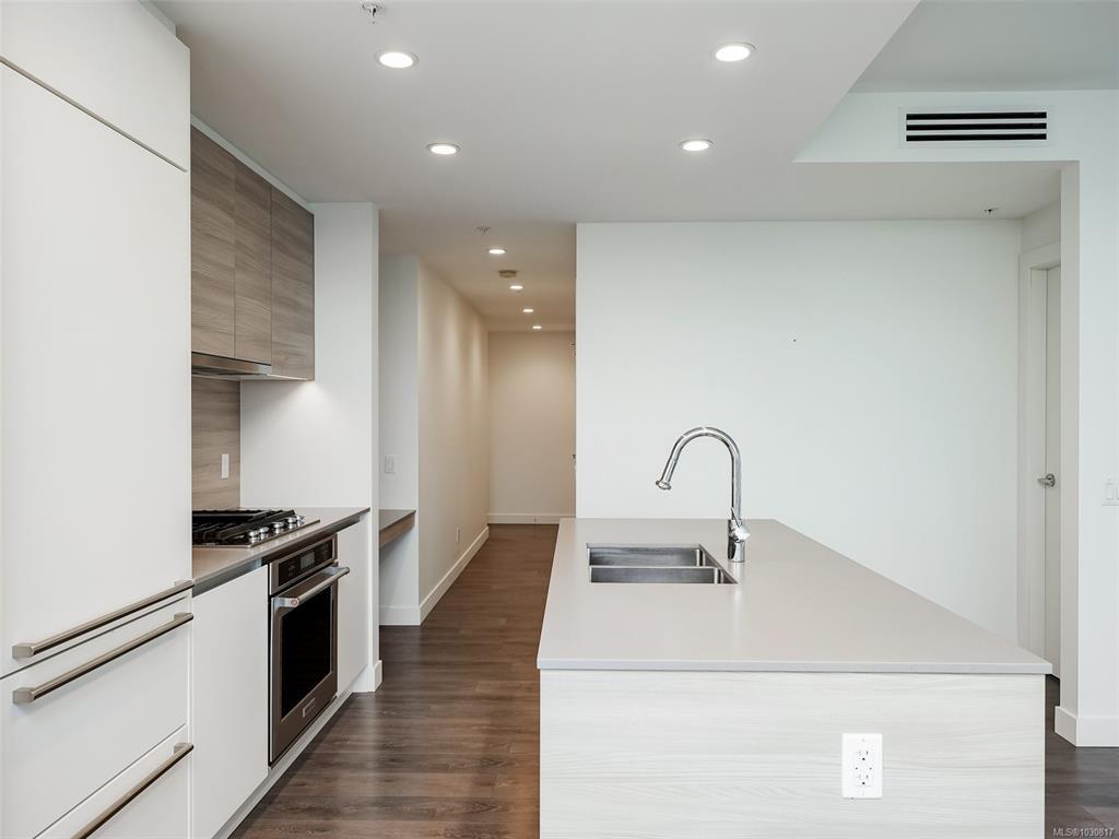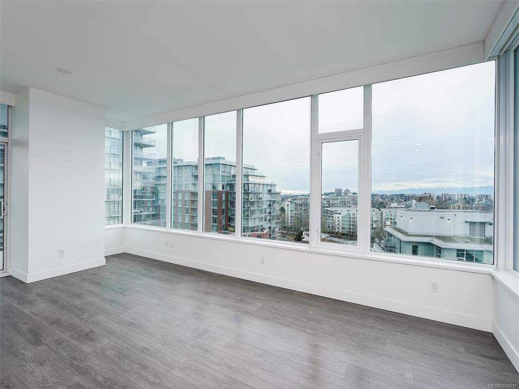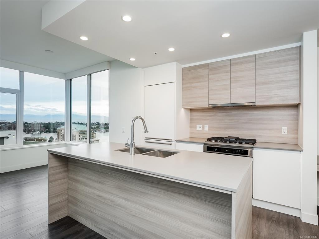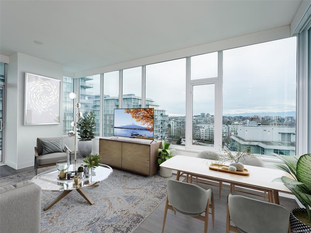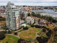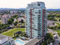 *OPEN HOUSE SAT APR 4th 1PM - 4PM* VIEWS, VIEWS, VIEWS! Welcome to Encore, a modern steel & concrete building where contemporary architecture meets timeless design. This bright corner unit is positioned high in the building & offers sweeping views of the Inner Harbour, city skyline, ocean and Olympic Mountains. With 1,021 sq ft of well-designed living space, the home features a functional 2 bedroom, 2 bathroom layout filled with natural light. The open kitchen includes high-end appliances & gas range, ideal for everyday living & entertaining. Step onto the generous, sheltered balcony to enjoy morning sunrises or relax while taking in the ever-changing views. The primary bedroom offers a spa-inspired ensuite & walk-in closet with excellent separation from the second bedroom. Encore offers outstanding amenities including a heated outdoor pool, fitness studio, outdoor BBQ & fire pit area, owners’ lounge, concierge service, one parking spot, storage locker & all located in vibrant Vic West