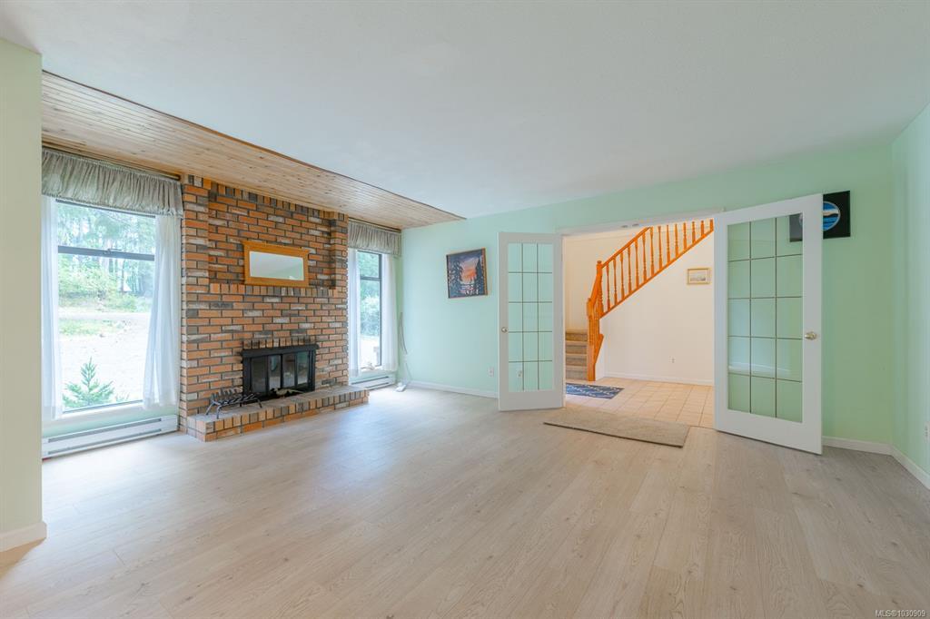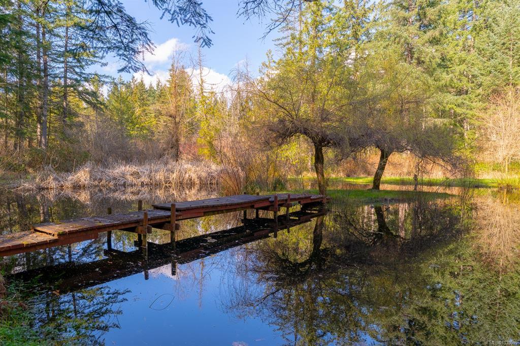 Tucked away in a quiet Nanoose Bay setting, this functional family home sits on a private and serene 5-acre property with a picturesque pond and walking trails. Offering approximately 2,300 sq ft, the home features 5 bedrooms and 3 bathrooms with an efficient, family-friendly layout. The main floor includes a spacious foyer, formal living and dining room with fireplace, and a cozy family room with wood stove off the kitchen and eat-in nook. Sliding doors lead to a deck overlooking the pond. The primary bedroom with ensuite, an additional bedroom, full bath, and laundry with access to the double garage complete the main level. Upstairs offers 3 bedrooms, a 4-piece bath, and 2 large storage rooms that could be used for various uses. The property is fairly level & includes a productive veggie garden, fruit trees, and plenty of space to enjoy peaceful rural living. Potential for a secondary dwelling (buyer to verify).