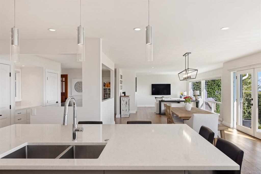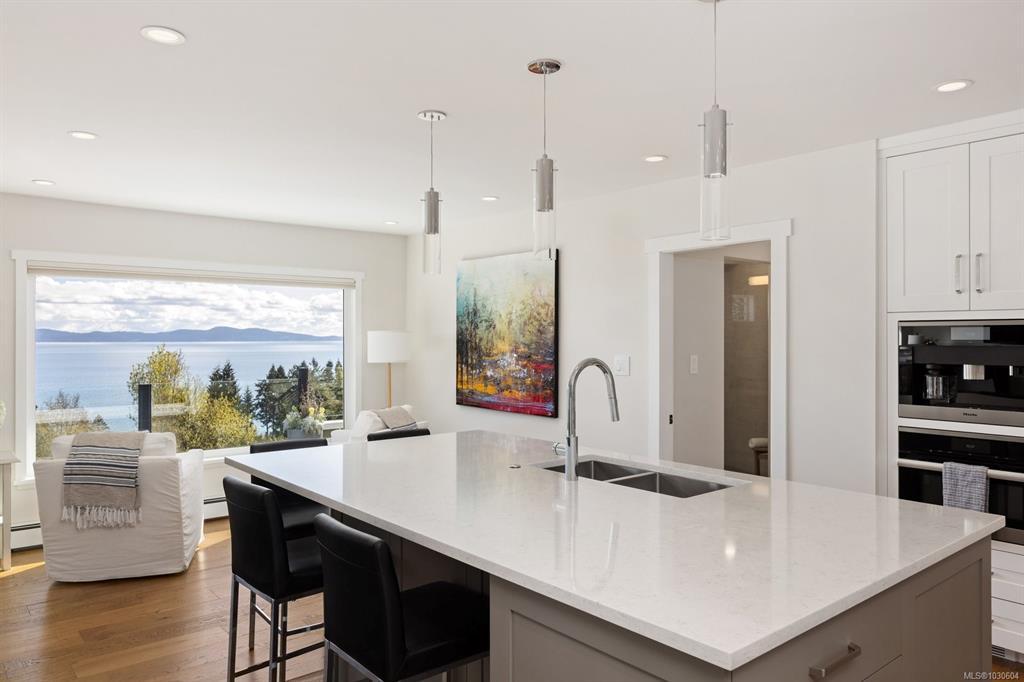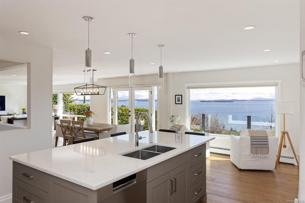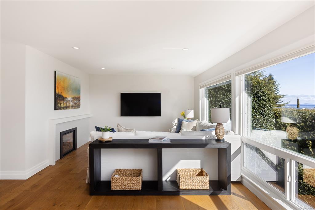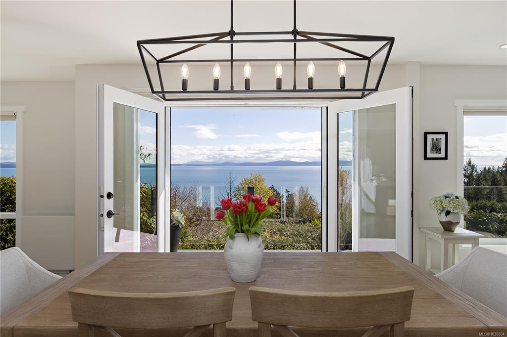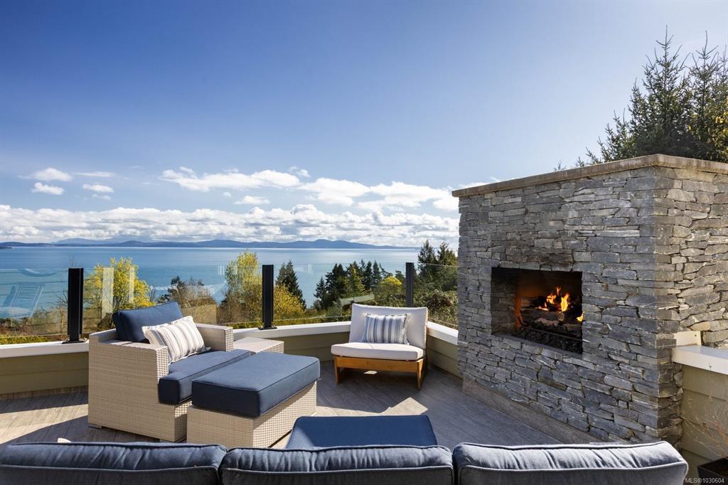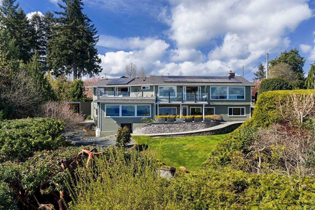Perched high above Cordova Bay at the end of a quiet cul-de-sac, this extensively reimagined 4 BR / 4 BA executive residence offers breathtaking, unobstructed views and stunning sunrises over the San Juan Islands and Mount Baker. Privately set on a 0.77-acre lot, the home is stylishly renovated, meticulously maintained and filled with natural light, capturing the outlook from nearly every room. A refined interior of casual elegance blends luxury with comfort. The open-concept main level features a chef-inspired kitchen with premium appliances, quartz counters and abundant storage, flowing into spacious living and dining areas anchored by a statement fireplace. French doors open to an oversized view deck with outdoor fireplace—an exceptional setting for entertaining or unwinding. The main-level primary suite offers a walk-in closet and spa-inspired ensuite. Downstairs includes 2 BR's, 2 BA's, family room and laundry. Complete with a detached studio, solar and EV charger.