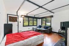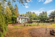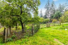Set on a quiet and expansive lot, this enchanting 1948 character home is surrounded by lush gardens, blooming rhododendrons, and a beautiful collection of mature fruit trees. The fully fenced property offers a serene setting with gentle sunlight throughout the day, a decorative pond, and several charming outbuildings including a potential studio, workshop, garden sheds, and greenhouse.