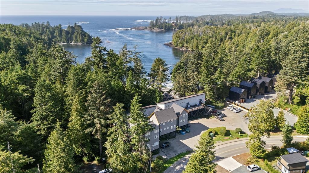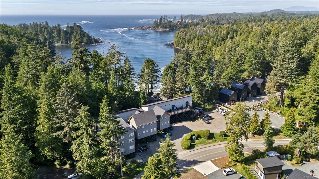 STEPS TO THE OCEAN and the Wild Pacific Trails Lighthouse Loop, this is a fantastic opportunity to own your very own vacation/revenue property located at Terrace Beach Resort in beautiful Ucluelet BC. Fern Gully Loft is a cozy 1 bedroom, 1 bathroom loft suite with a full kitchen, updated flooring on the main, and an upddated bathroom, this vacation home is ready to go. The building has a new roof in 2022, is zoned CS-5 to allow for short term vacation rentals, offers optional onsite management and can be offered fully furnished . Just minutes to downtown Ucluelet, Fern Gully Loft is an excellent revenue generator. Inquire for rental income statements.