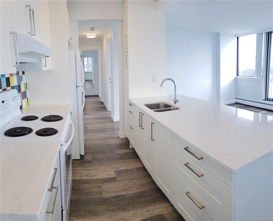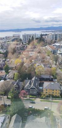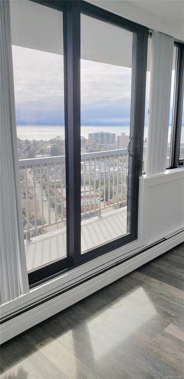Enjoy stunning panoramic views from this southwest corner suite, showcasing the Victoria waterfront from Ross Bay to Race Rocks, the Olympic Mountains, and the Inner Harbour. This bright, updated home features paint, flooring, countertops, and appliances, plus a spacious primary bedroom with ensuite. Located in a well-maintained concrete building in James Bay, just steps to downtown, Beacon Hill Park, and the oceanfront. Amenities include a heated outdoor pool, hot tub, sauna, workshop, bike storage, and secure underground parking. Monthly fees include property taxes, heat, and hot water.