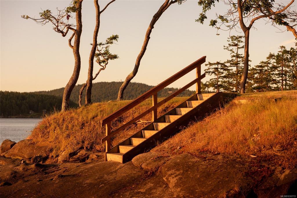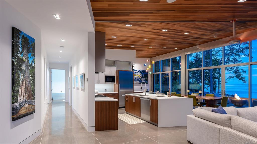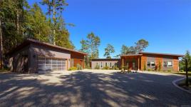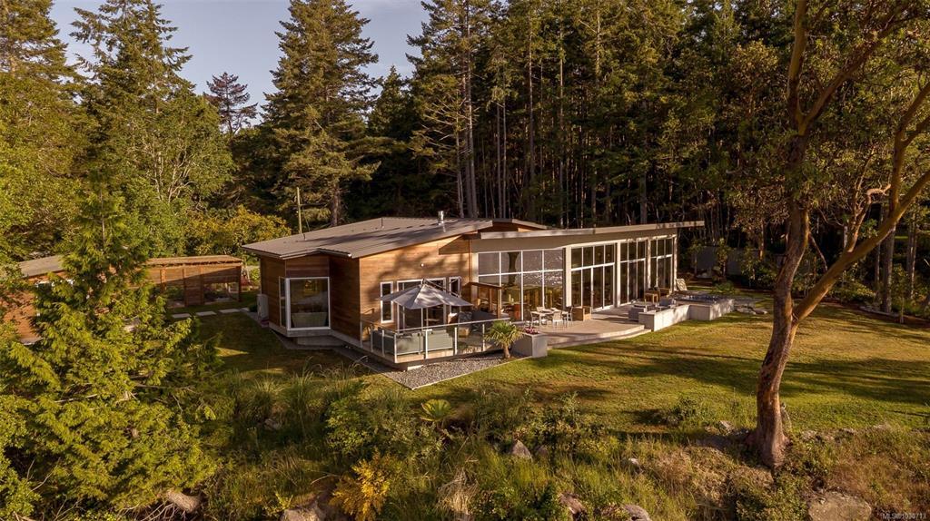 An architectural masterpiece on Galiano's sandstone shores. Discover a masterclass in West Coast Contemporary design, set on 1.51 acres of sculptured south-east facing shoreline. This 3,150-sqft sanctuary comprises three distinct "pods" that blur the line between indoor luxury and wild island beauty. Engineered with a concrete moment frame and high-gauge metal roof, the residence features custom clear cedar ceilings, polished hydronic-heated concrete floors, and floor-to-ceiling Westeck commercial windows framing Mount Baker. The 2,400-sqft main pod boasts an expansive great room with a Miele dual-energy stove, Bocci lighting, plus a primary ensuite with a 5-piece bath. Guests will love the private casita attached to the generous 500-sqft double garage, the cozy detached bunk pod, and the massive driveway suitable for boats and RVs. Step onto the waterfront patio to watch orcas, sea lions and eagles, or walk to the Sturdies Bay ferry and "downtown" hub. A rare, turn-key island refuge.