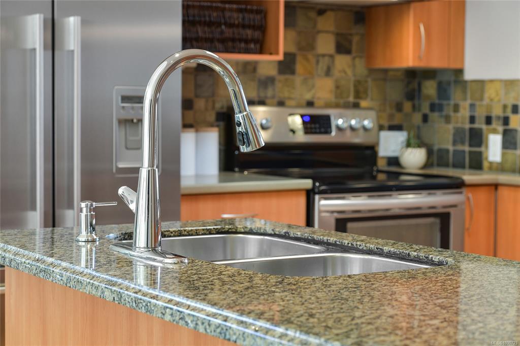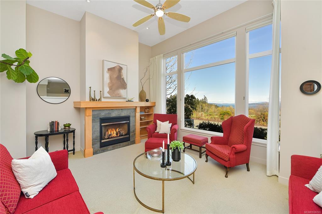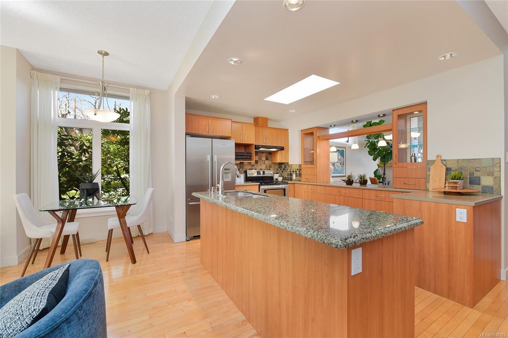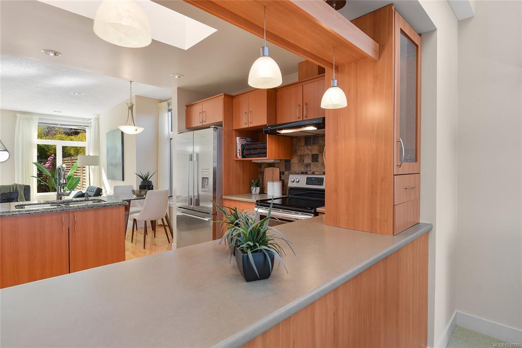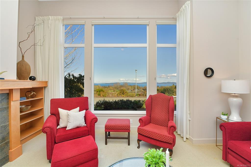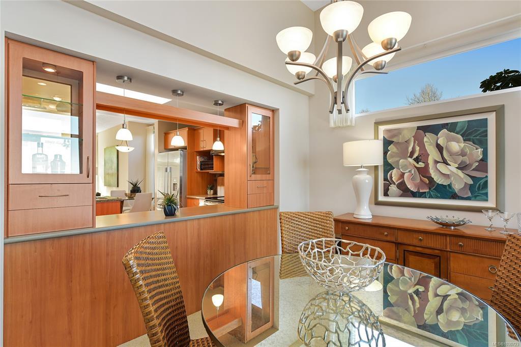 Indulge in the pinnacle of luxurious living at SAYWARD HILL in this magnificent Cordova Bay townhome. Offering nearly 2,100sf, this home exudes elegance & sophistication at every turn. From the exquisite views of the ocean & golf courses to the meticulously crafted details, this home is a true masterpiece. Quality finishes, maple hardwood flooring, and a gas fireplace set the stage for a lifestyle of utmost comfort and style. Updates such as a newer Fisher Paykal fridge and a heat pump/AC in the Primary Bedroom enhance the modern conveniences of this home. Flooded with natural light from skylights, floor-to-ceiling windows, the living spaces open seamlessly to a private patio and garden oasis, perfect for entertaining guests or simply unwinding in tranquility. Double garage, ample storage, and prime location near walking paths, beaches, boutique shops, this is a rare opportunity to experience the ultimate Westcoast lifestyle in a prestigious complex built by renowned Jawl Developments.