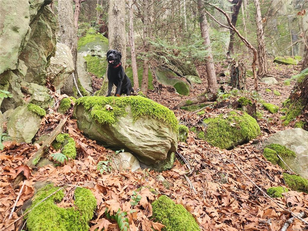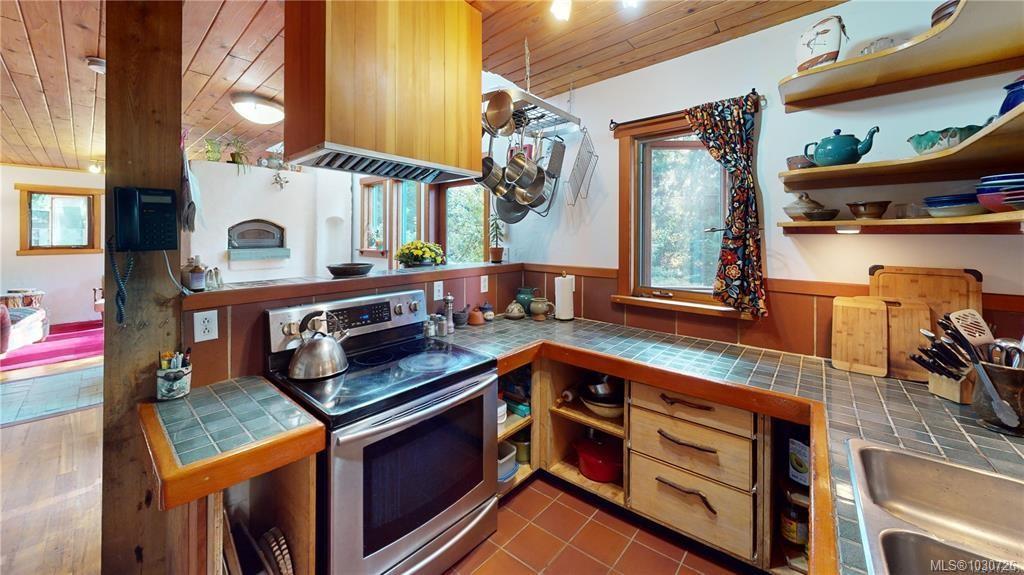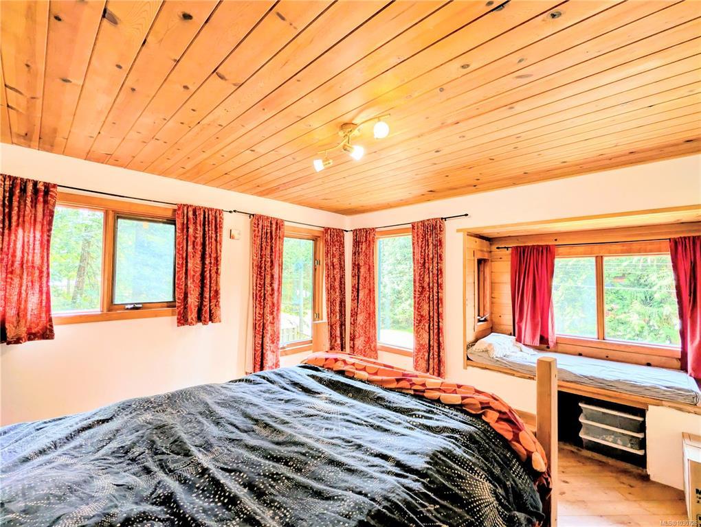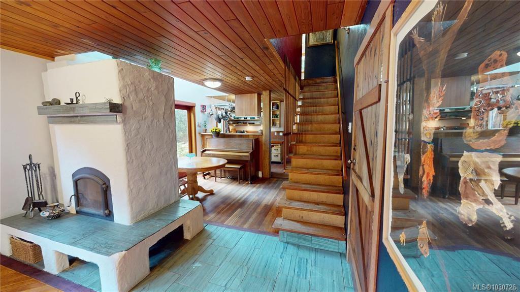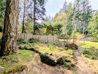 Creatively designed home located on 2 separate title lots with a combined lot size of .86 acres. This two story 1108 square foot, 1 bedroom plus den, 1.5 bathroom home enjoys southwest exposure, taking advantage of its passive solar design. Large primary bedroom and cozy den have ample windows creating bright spaces. The main floor living area enjoys the warmth of a Tempcast Masonry Heater which easily keeps both up and down warm throughout the winter months. Explore the trails that wind through the trees and boulders on the hillside behind the house. A mature apple tree and kiwi vine, flowering bulbs and mature perennials adorn the property amongst the rock work and raised garden beds. This convenient location is walking distance to the beach and ferry terminal, making this a perfect setup for someone looking for a sustainable living experience. The adjoining lot can accommodate a full dwelling, studio, extra garden or just a little more space between you and your neighbour.