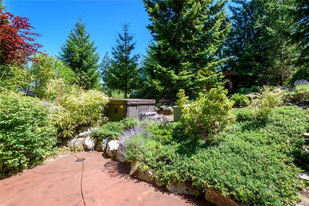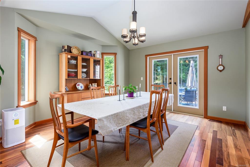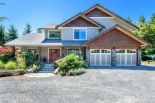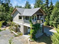 Bring the family! This multi-generational retreat offers peace, quiet and serenity. The main home is a West Coast beauty, 4400+ sq ft, 5 bedrooms/4baths with tiger wood floors, clear hemlock trim, and fir doors to give it a rustic feel. Upstairs, you'll find 4 large bedrooms, including the primary with a huge ensuite that feels like a spa. Lower floor is a versatile space with a large rec room, and another bedroom and bath. The quality continues to the carriage house with vaulted ceilings, river rock gas fireplace and a private deck. Between the two homes you'll find the sauna house, featuring an outdoor shower, sitting area and a cold plunge tub. Feed the whole family from the established large organic garden with a 30x40 greenhouse, mini orchard and chicken coop. Land is almost 5 acres and fully fenced and gated. To top it off, there's another private cleared fully serviced building site with it's own driveway and gate awaiting your future ideas, this is truly island living!