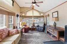 Woodland Park Model at Resort on the Lake! Located at 2118 Buttle Way, this fully furnished and move-in-ready property offers an approx. 30' x 16' covered deck with metal roof, parking for up to 3 vehicles, gravel under the home, garden shed, and natural gas BBQ hookup. Inside features include a bedroom with built-in storage, bathroom with shower and built-in storage, electric fireplace, portable A/C, hide-a-bed sofa in the living room, and hot water tank approx. 5 years old. Separate casita includes washer/dryer and room for a guest bed. Resort on the Lake amenities include outdoor pool and hot tub in summer, clubhouse rentals for family gatherings, tennis/pickleball court, exercise room, private access to Westwood Lake trail, and fishing dock. All data approximate.