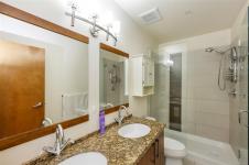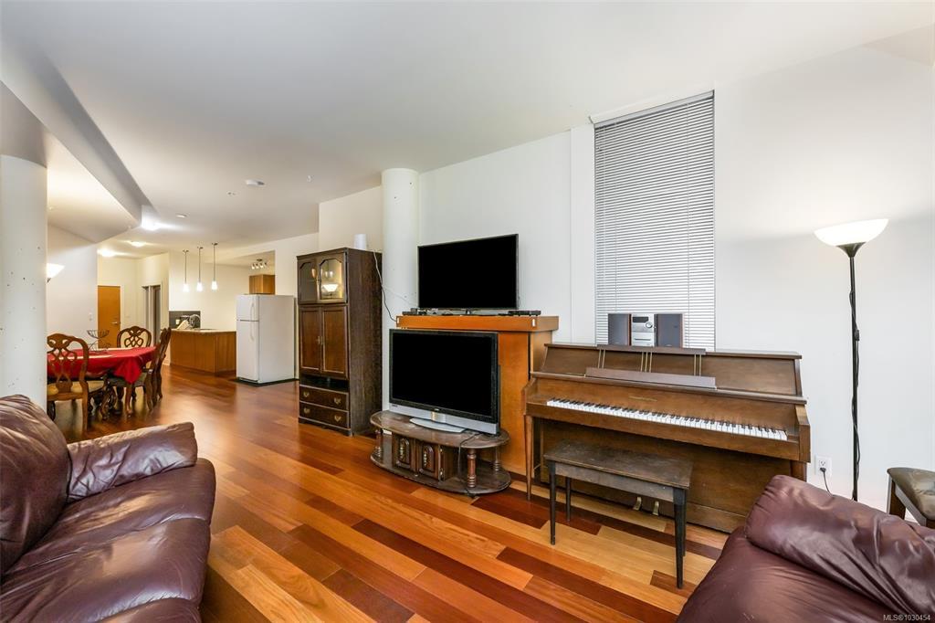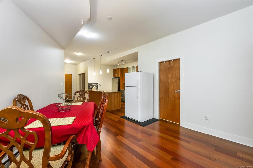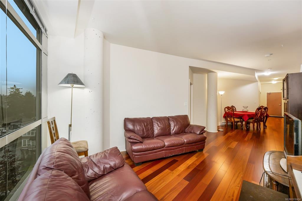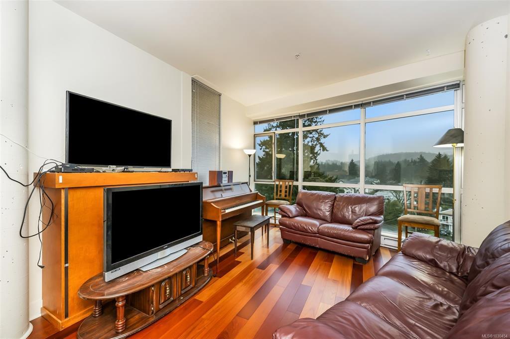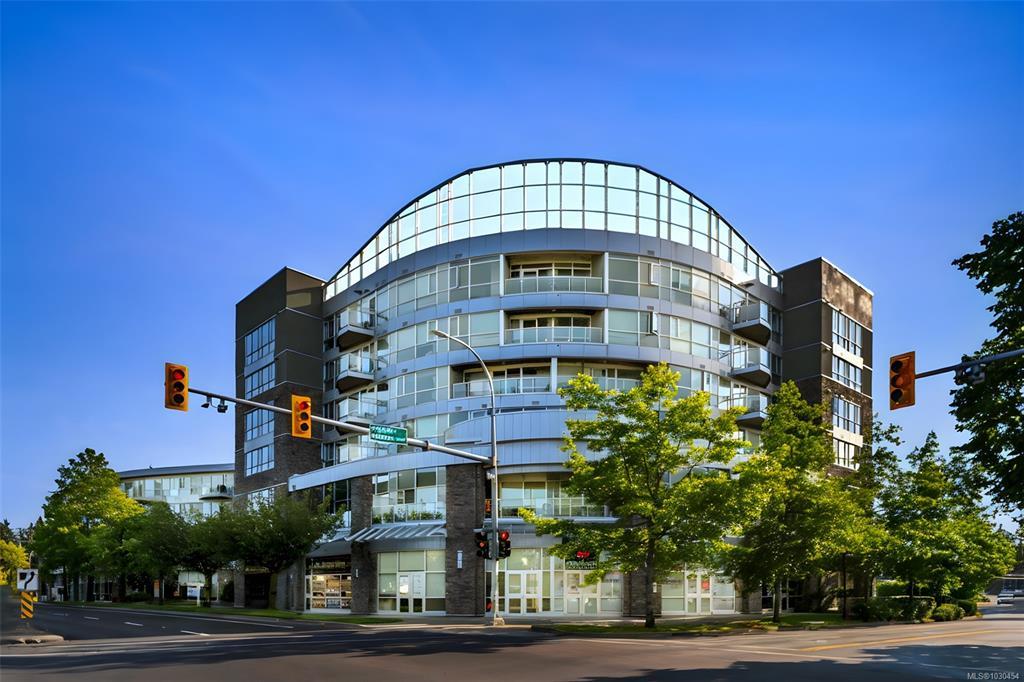 Spacious 2-bedroom, 2-bath + den top-floor unit (Steel & Concrete Building) with bright open layout and mountain views. Quiet side of the complex. Features high ceilings, floor-to-ceiling windows, hardwood floors, fireplace, and balcony. Modern kitchen with ¾ granite countertops, tiled backsplash, stainless steel appliances, new microwave, and eating bar. Primary bedroom offers a deluxe ensuite with double sinks and glass walk-in shower. Freshly painted with separate laundry room. Includes secure underground parking, storage locker, and bike storage. Building amenities: rooftop patio with Cobalt Blue pool, lounge area, and running track. Well-managed, upscale complex close to shopping, dining, transit, walking trails, recreation, and Royal Roads University. Additional parking available