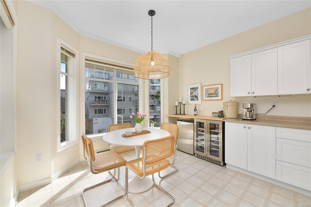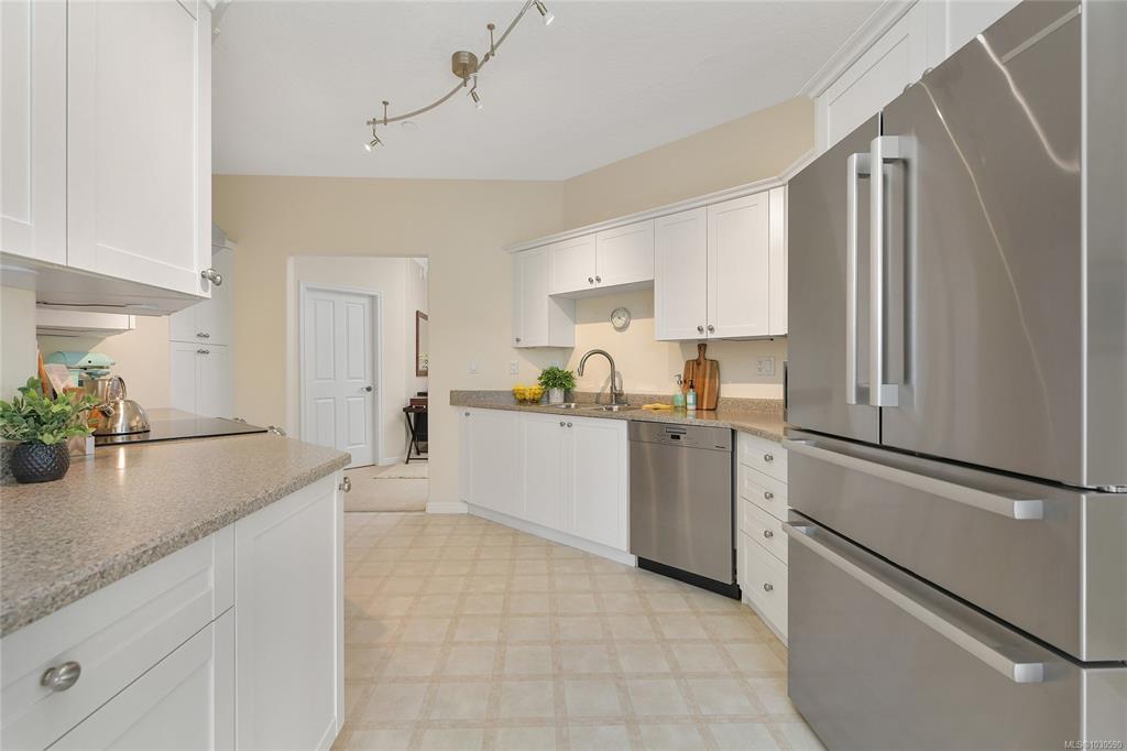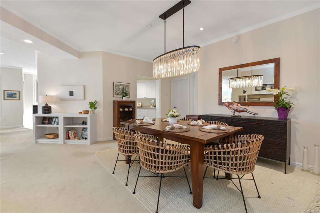 Welcome to The Moorings, one of Sidney’s most sought-after buildings. This spacious 2 bd, 2 ba corner condo offers 1,755 sq ft of bright, well-designed space—a size rarely available. Large picture windows, 9’ ceilings, and a sunny SE exposure fill the home w/ natural light throughout the day w/ ocean glimpses. The kitchen features newer stainless appliances, ample cupboard & counter space, & an eating nook. The open floor plan creates great flow between the kitchen, dining, and main living areas, designed for easy day-to-day living and entertaining. The primary bd is generously sized, complete w/ a walk-in closet & ensuite w/ soaker tub & walk-in shower. Thoughtful separation between beds & baths adds to the functionality & privacy of the layout. Additional features include in-suite laundry, HRV system, covered parking, storage locker, & pet-friendly building. Located across from the ocean-perfect for daily walks. Steps to shops, restaurants, Shoal Centre,& all that Sidney has to offer