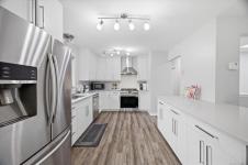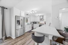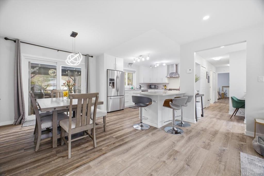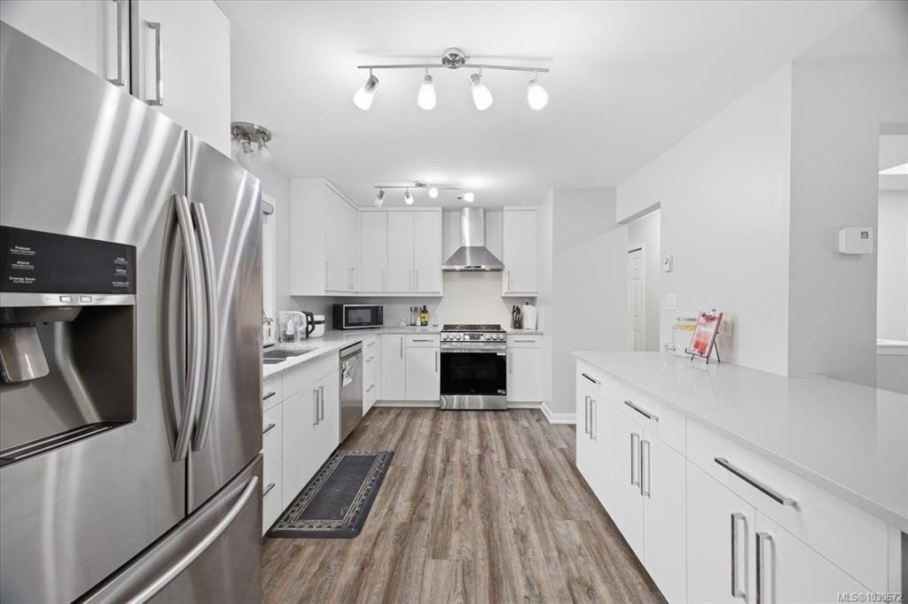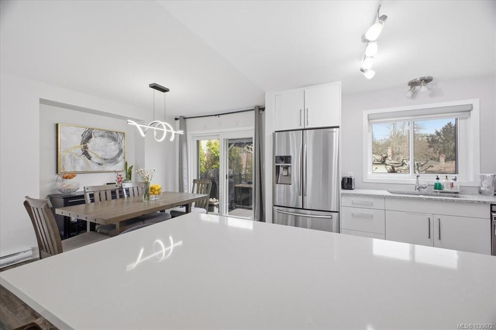 Bright, updated, and well-located in Departure Bay. This 4 bed, 3 bath home was fully renovated in 2018, offering a clean, modern interior with an open concept kitchen, dining, and living area that feels both spacious and functional. The kitchen features updated cabinetry, stone countertops, stainless steel appliances, and modern lighting throughout. Downstairs includes a large family room, fourth bedroom, laundry, and ample storage space—ideal for growing families or added flexibility. The windows, some flooring upstairs and the deck was updated in 2025. Step outside to a private backyard with a generous deck off the dining area, perfect for relaxing or entertaining, with additional storage below. The yard features 6 mature fruit trees including apple, plum, fig, and cherry, along with garden space. Located in a sought-after neighbourhood just minutes to Departure Bay Beach, parks, schools, shopping, and everyday amenities.
