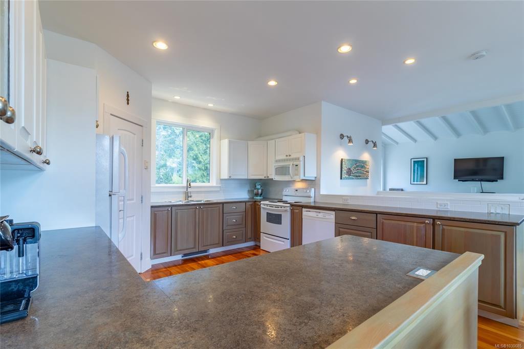 This is it! Custom built, 2700 sq. ft. 4 bedroom, 4 bathroom home enjoys spacious, open plan kitchen, dining and living areas on the upper level, Primary bedroom with Ensuite & private, sunny balcony mid-level & expansive, self-contained suite with separate entrance on the ground level; perfect for multi-generational accommodation or rental income. Beautiful home has been lovingly maintained and presents like new. Easy care property is tastefully landscaped featuring many unique subtropical plantings. Situated at the end of a peaceful cul-de-sac, this desirable property basks in sunny southern exposure. Property is served by Municipal Water and Sewer systems, a bonus for Island living! Home is offered in turn-key condition with most principal furnishings included. This is a superb option for full-time or recreational use. Excellent location near walking trails, disc golf, swimming & paddling on Magic Lake and several ocean access points including Thieves Bay Community Marina.