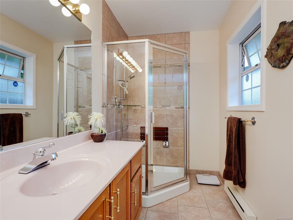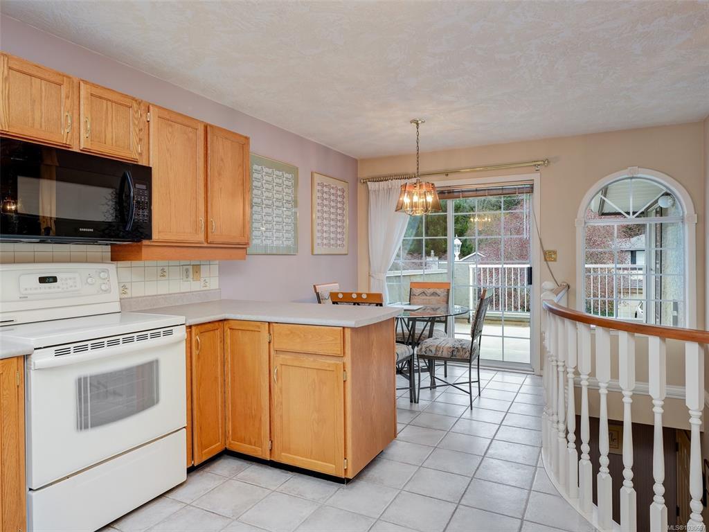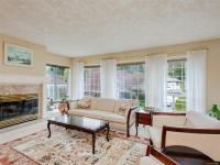 Tucked away on a quiet Broadmead cul-de-sac, this bright and beautifully maintained home impresses from the moment you step inside. Gleaming oak hardwood flows up the staircase and along the hallway, setting a warm and welcoming tone throughout. The large eat-in kitchen features oak cabinetry and patio doors opening to a front enclosed deck, while a spacious family room off the kitchen leads to a side deck. The generous in-line living and dining room with fireplace is anchored by a bright sunroom — complete with skylight and three patio doors. Two bedrooms are well served by two full bathrooms, with the primary suite enjoying a private 3-piece ensuite with glassed shower stall. Built-in vacuum throughout. Outside, the professionally landscaped and well maintained grounds feature a private rear yard with underground sprinklers, and the double garage provides access to a full stand-up basement storage area at the rear — a rare and practical bonus.
