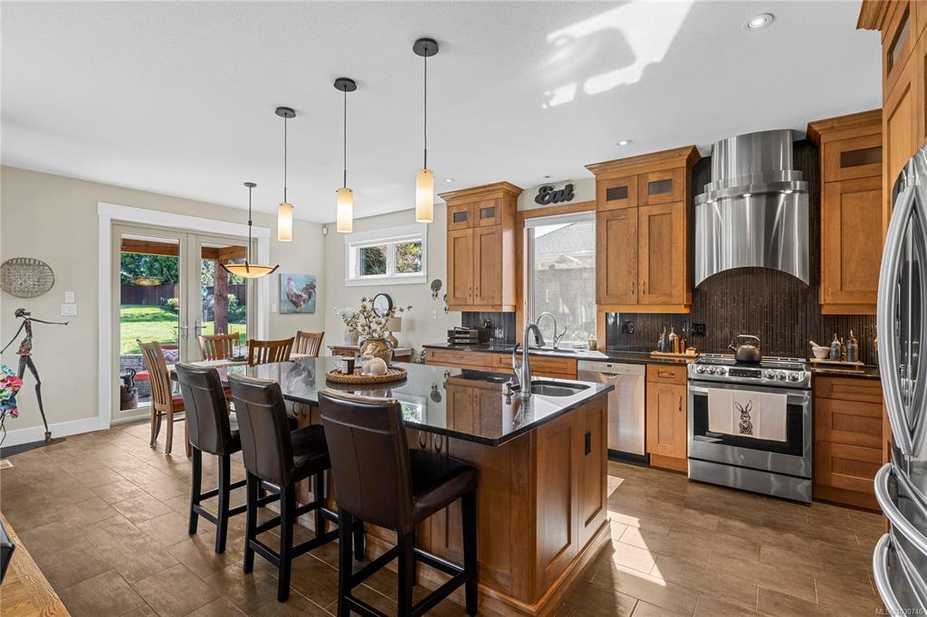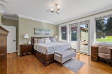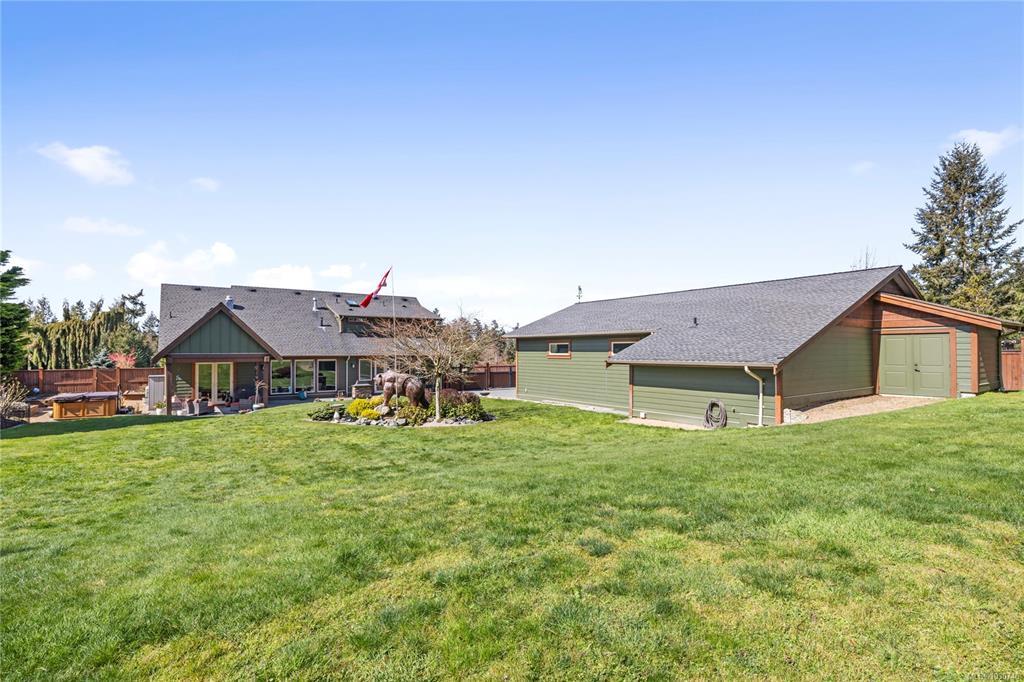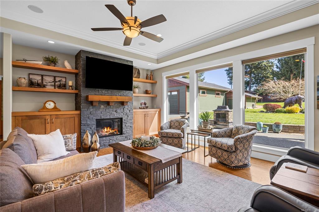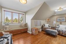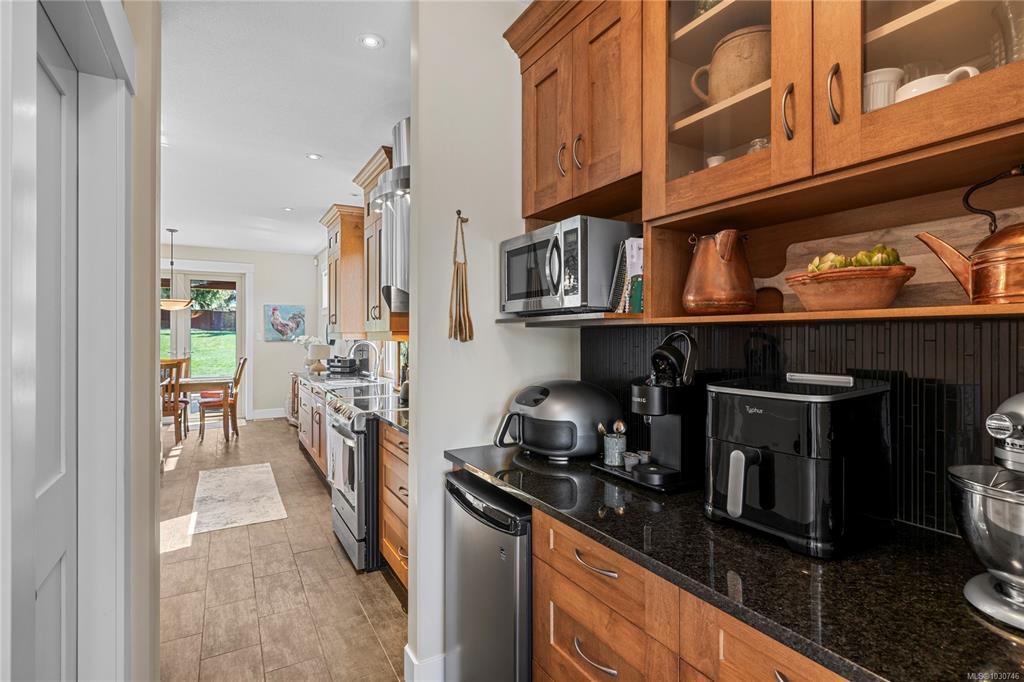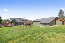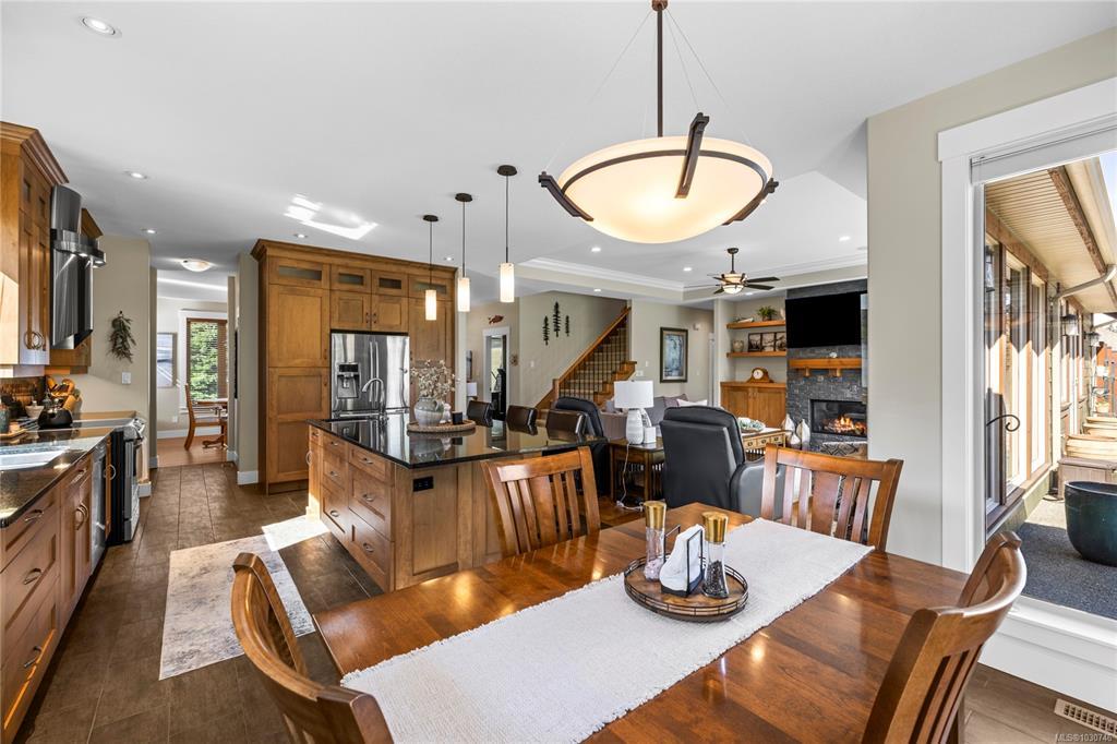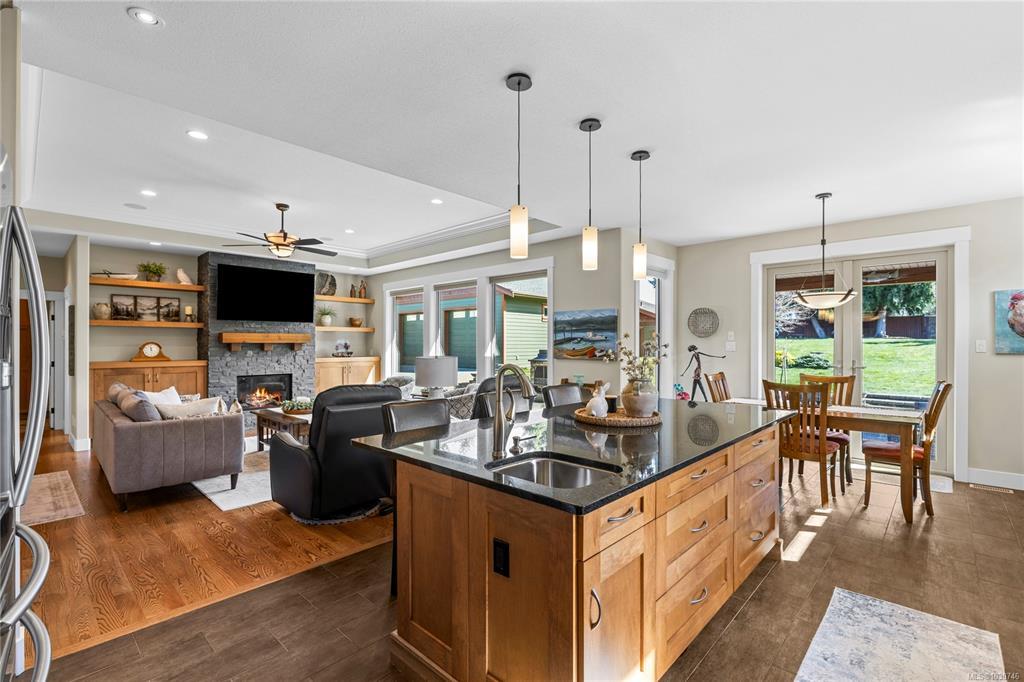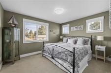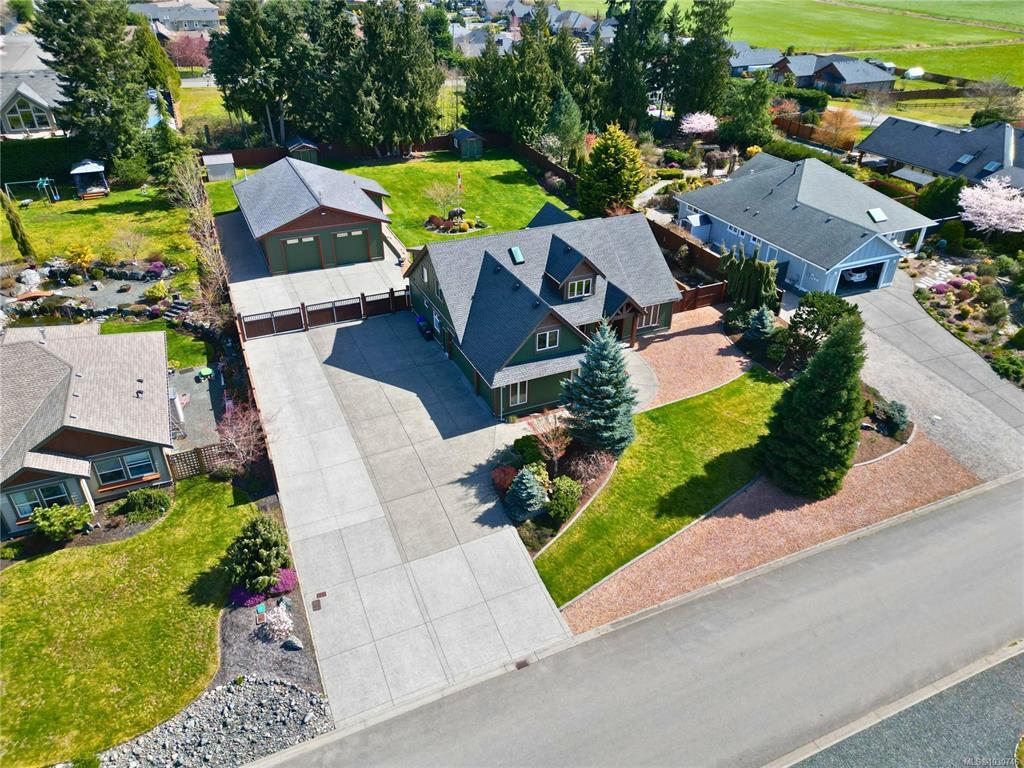 Set in the sought-after Madronna Heights neighbourhood, this beautifully maintained 4 bed plus den & 3bath home sits on a private 0.6 acre of landscaped property. Bright & spacious with open-plan living & kitchen featuring large windows cozy gas fireplace & a cook’s kitchen well appointed with butler’s pantry, generous counter seating for gatherings, double doors leading to the private patio & backyard. Dedicated dining room for more formal gatherings. Lovely finishes with Oak hardwood & tile flooring throughout The main-floor primary bedroom provides a quiet retreat with an ensuite featuring heated floors and a walk-in shower. Upstairs offers excellent separation of space with three bedrooms, a family room, and a full family bathroom—ideal for family or guests. A spacious 3-car garage adds everyday convenience, while the large detached 1800+ sq ft shop with 2 oversized doors & 2pc bath, provides outstanding versatility for the car enthusiast or workspace needs. Close to trails & town!