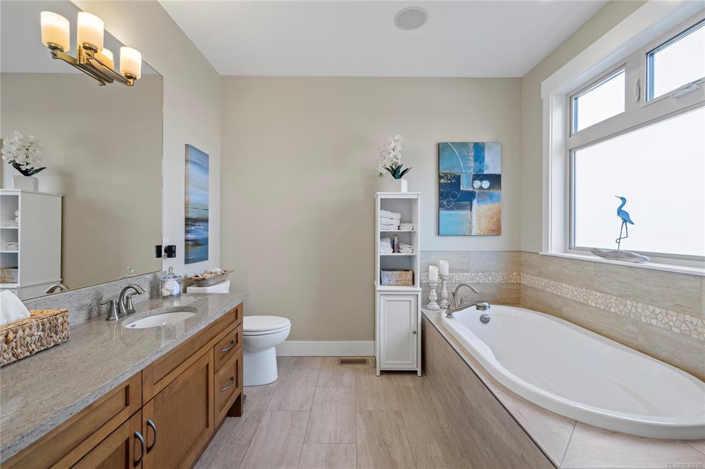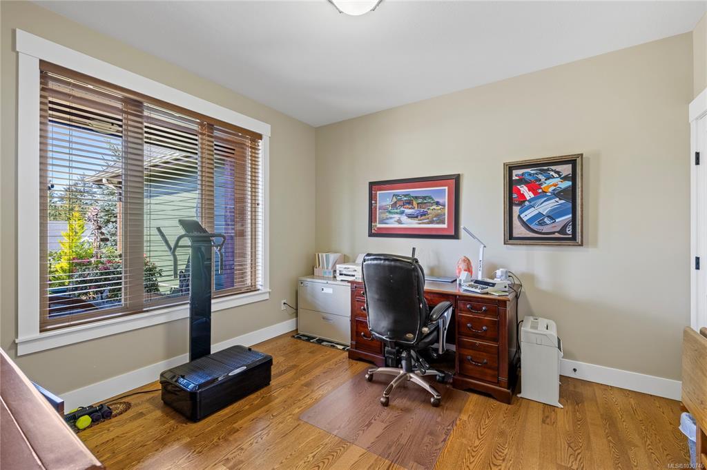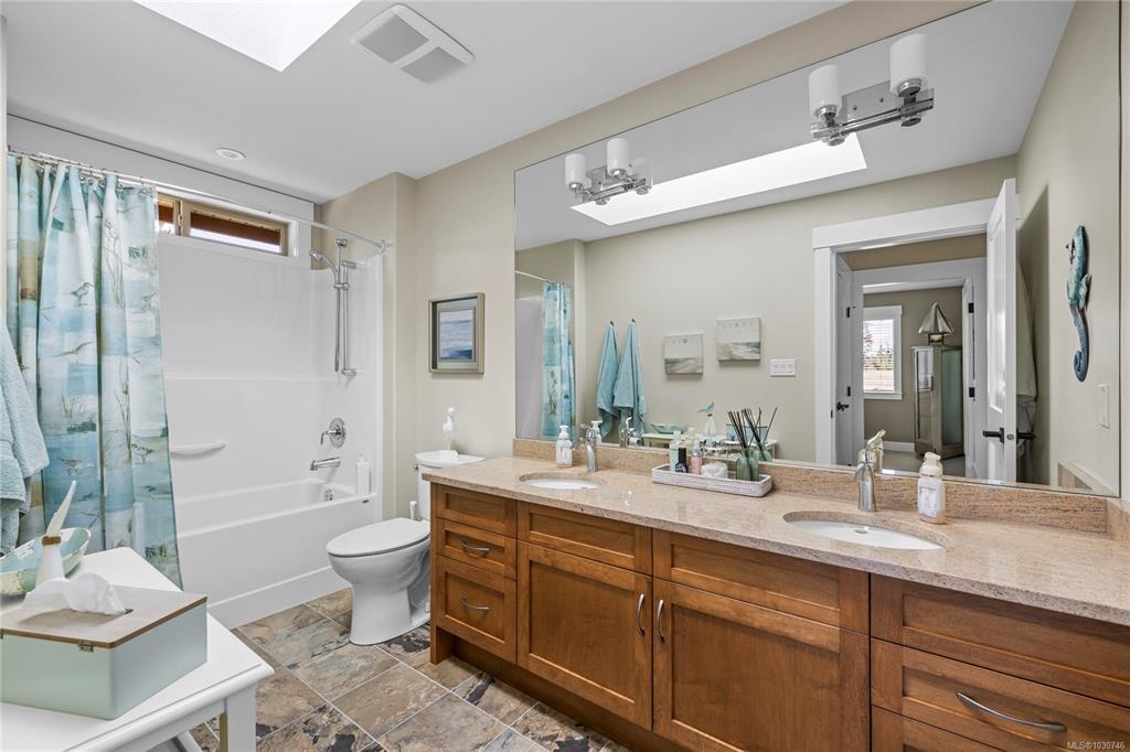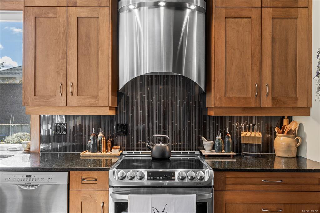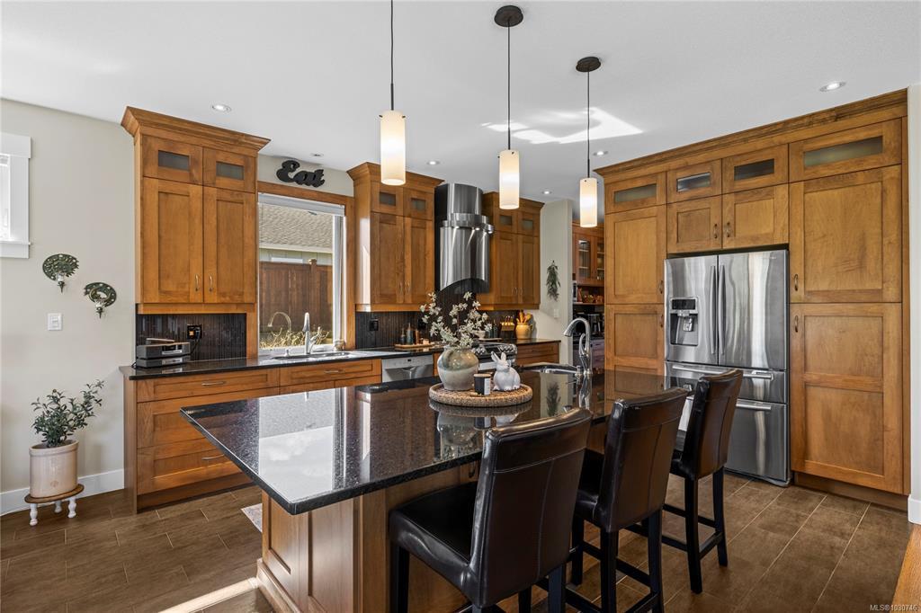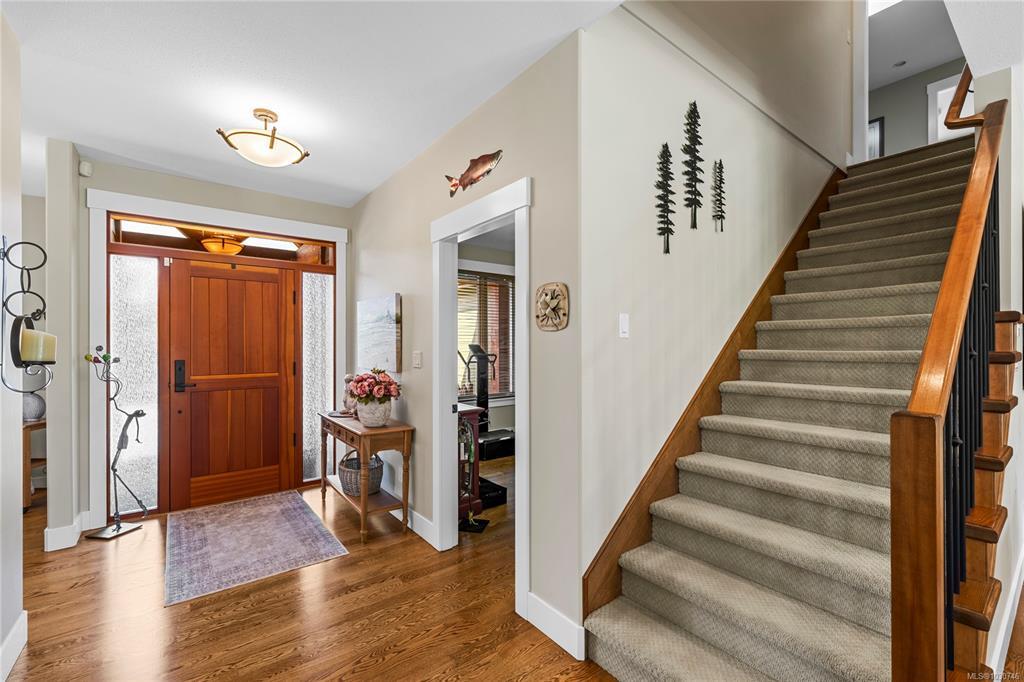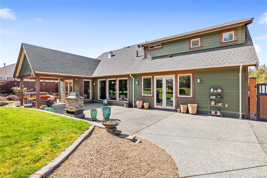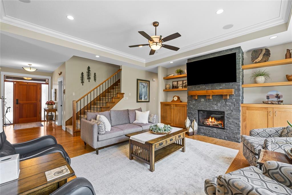 Set in the sought-after Madronna Heights neighbourhood, this beautifully maintained 4 bed plus den & 3bath home sits on a private 0.6 acre of landscaped property. Bright & spacious with open-plan living & kitchen featuring large windows cozy gas fireplace & a cook’s kitchen well appointed with butler’s pantry, generous counter seating for gatherings, double doors leading to the private patio & backyard. Dedicated dining room for more formal gatherings. Lovely finishes with Oak hardwood & tile flooring throughout The main-floor primary bedroom provides a quiet retreat with an ensuite featuring heated floors and a walk-in shower. Upstairs offers excellent separation of space with three bedrooms, a family room, and a full family bathroom—ideal for family or guests. A spacious 3-car garage adds everyday convenience, while the large detached 1800+ sq ft shop with 2 oversized doors & 2pc bath, provides outstanding versatility for the car enthusiast or workspace needs. Close to trails & town!