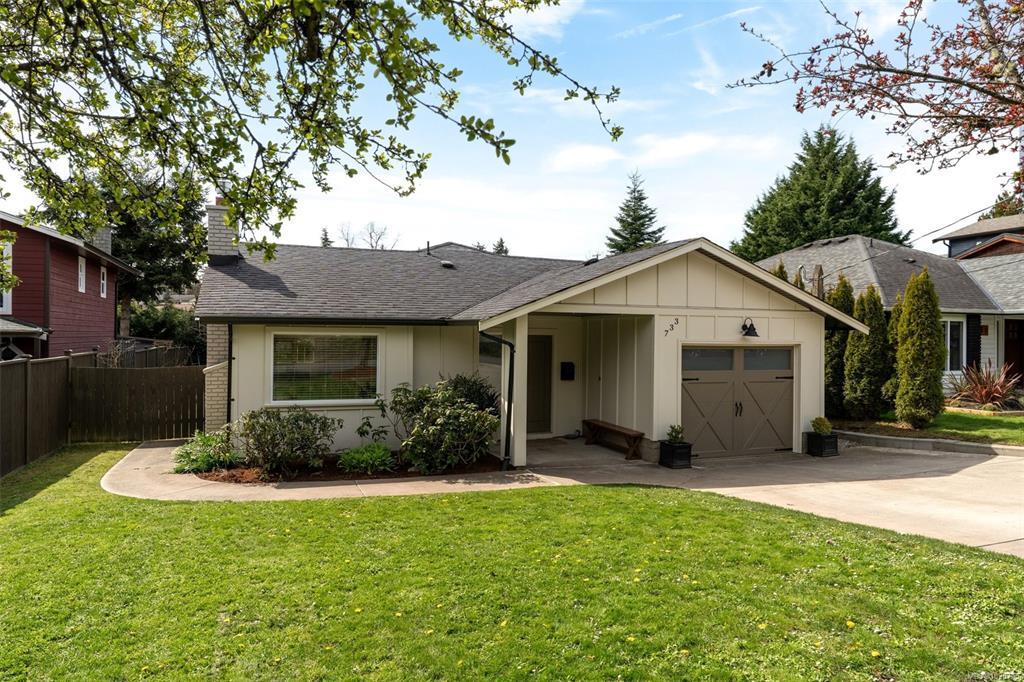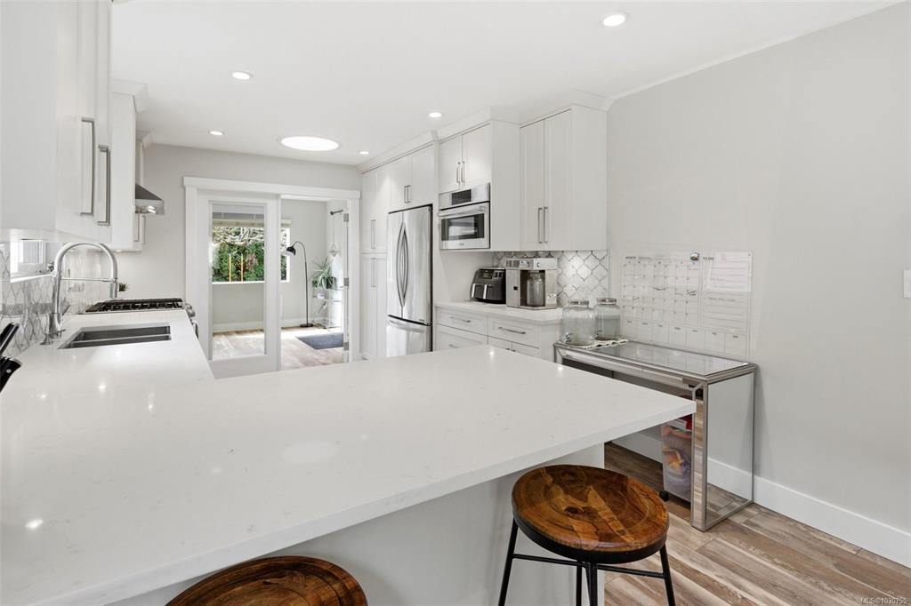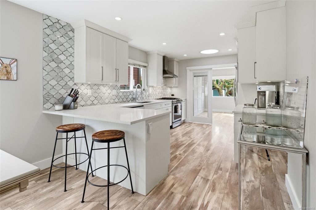 O/H Sat, Apr 4, 1-3pm. Turnkey Perfection in the Heart of Royal Oak! Completely transformed & beautifully modernized, this 1,468sq.ft Royal Oak rancher offers effortless one-level living on a quiet no-through road. Featuring 3 BR, 2 BAplus den (option as a 4th BR or home office), the home showcases a stunning shaker kitchen w/ample cabinetry, quartz countertops, gas range, & stainless appliances. Open concept main living & french doors to versatile den w/murphy bed. Thoughtful upgrades since 2020 include flooring, paint, trim, cabinetry, counters, lighting, laundry & more along with exterior hardi siding, gutters, soffits, garage door, & added attic insulation! Cozy nat.gas FP, spacious primary with ensuite (in-floor heat), & seamless indoor-outdoor living w/custom glass-covered patio. The fully fenced, sun-filled yard is perfect for pets & families. Walking distance to parks, trails, schools, & a short drive to all amenities of Greater Victoria. This is one level living at its finest!
