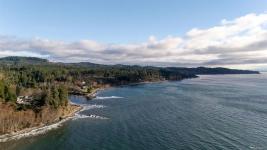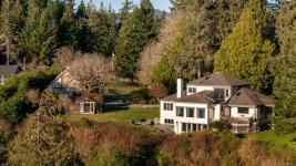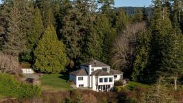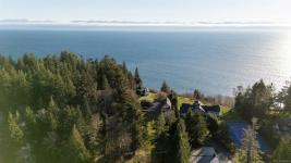 Perched above the ocean & just minutes beyond the vibrant seaside community of Sooke, this extraordinary waterfront acreage offers unobstructed views & a lifestyle deeply connected to nature. Watch the sun rise over open water & set behind the Olympic Mountains, creating a breathtaking daily panorama that never grows old. Set on 8 private, flat acres, the property blends rural tranquillity with endless opportunity. A winding driveway & mature landscaping set the tone, & a sense of calm settles in the moment you arrive. Equestrian enthusiasts will appreciate the barn, riding ring, & space to roam, train & ride at home. The timber-framed residence feels warm & grounded, featuring vaulted ceilings, wood floors, & a living room anchored by floor-to-ceiling windows that frame the ocean views. With 2 primary bdrms & a full lower level offering excellent potential for guests,family,or suite, this is a rare offering that delivers privacy, freedom, space for horses & the ocean at your doorstep.