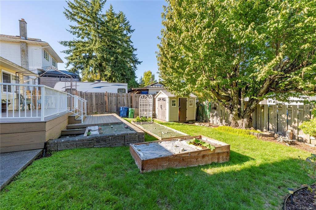 Well-maintained Central Nanaimo family home in a convenient location at a great price! This 3 BD, 3 BA split level home has a great floor plan w/ all BD on the upper level incl. a large Primary & ensuite! Brazilian wood floors flow nicely from entry to the cozy living room w/ gas fireplace & adjoined formal dining room. The updated kitchen features a gas range, lots of cupboard space & a window outlooking the mature back yard. From the kitchen, access the large composite deck (2019)- perfect for family BBQs! Sip morning coffee while overlooking the sunny back yard w/ garden beds, & shed. Relax in the family room & large den on lower level which can be a guest room. Meticulous landscaping throughout with blooms all summer/fall, veggie beds incl. an established asparagus bed! This is an ideal family home w/ double garage, close to all levels of schools, transit, shopping, restaurants, clinics & recreation. Only minutes to ferries & seaplanes! Act now before this great property is gone!