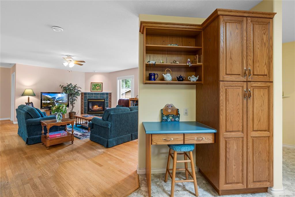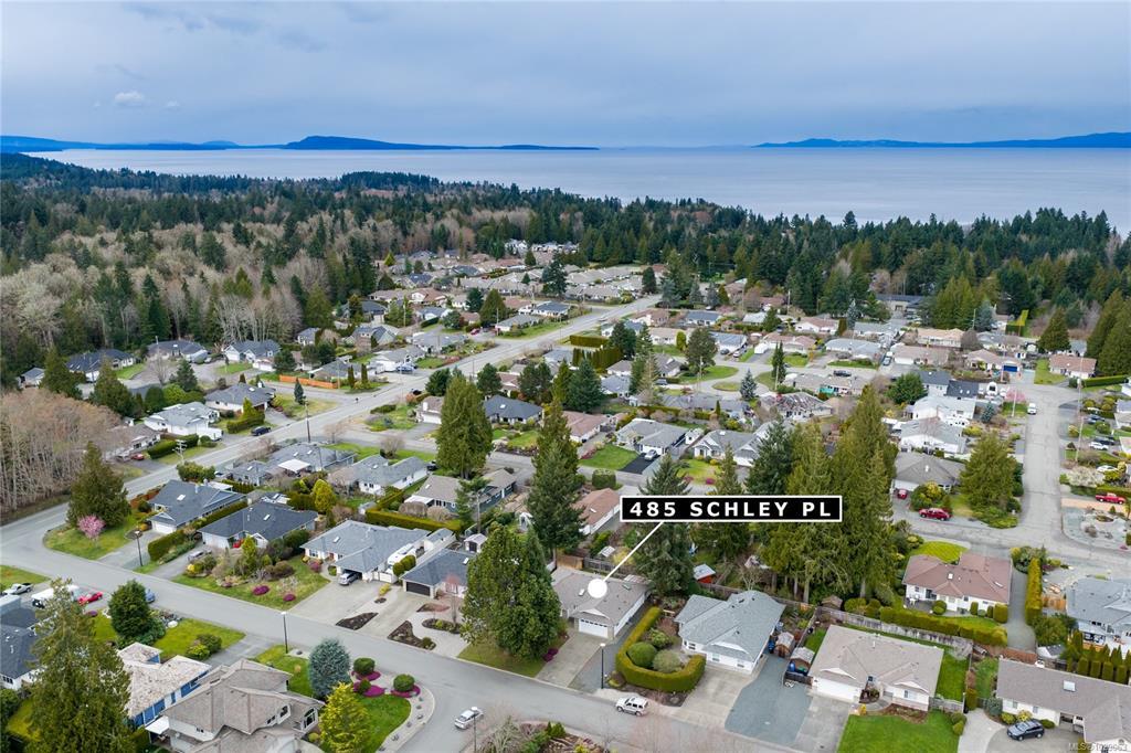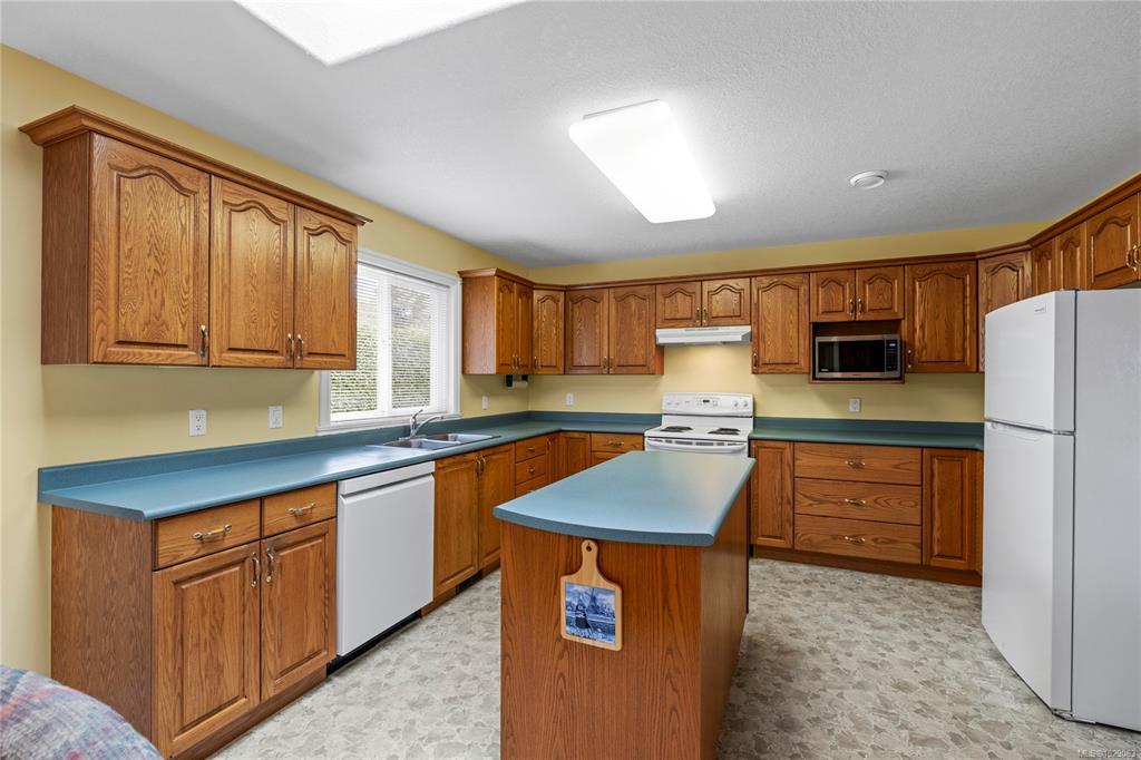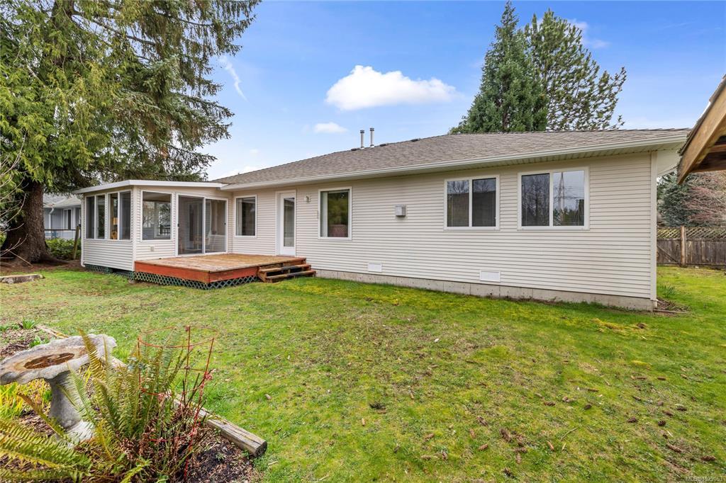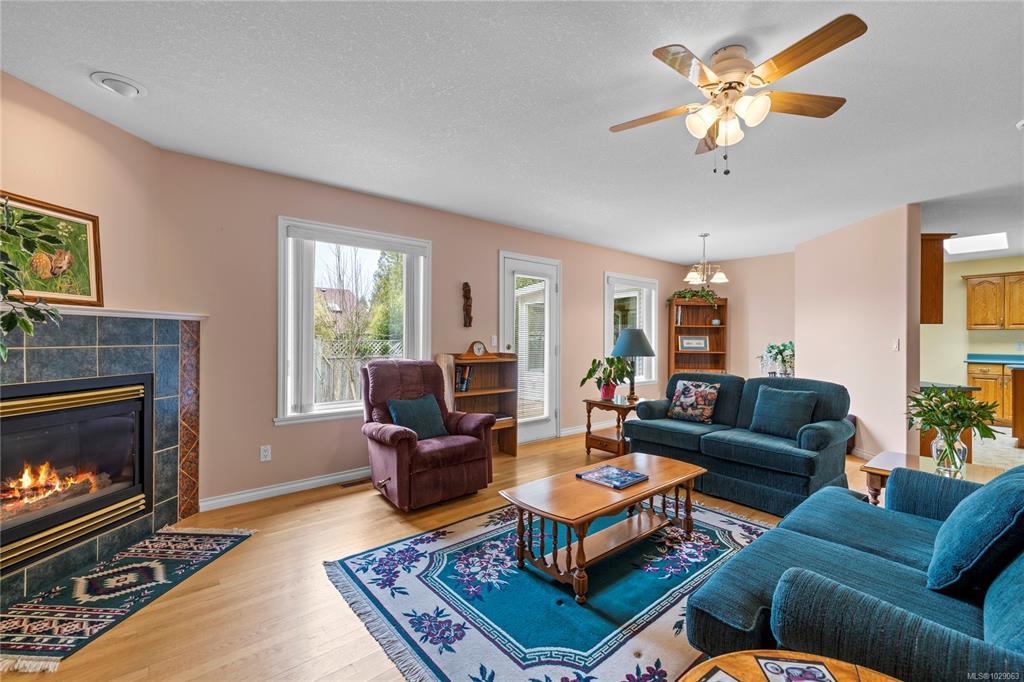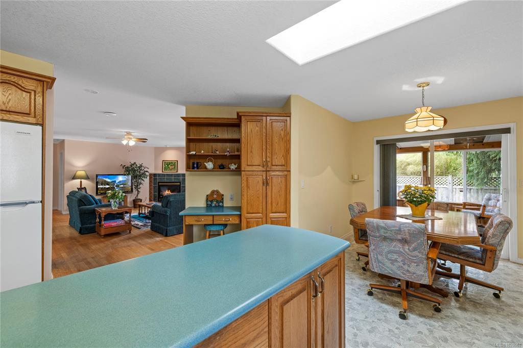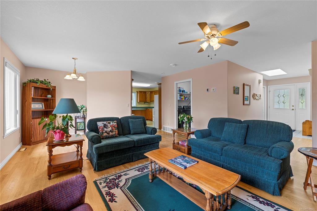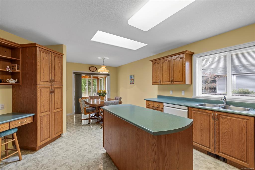 Brand New Roof on this cute, 1570sf, crawlspace Rancher in Qualicum Beach! New HRV & HW tank as well, so all the heavy lifting has been done. The expansive kitchen, with a central island & skylight, is open to a pretty dining area & an attractive sunroom beyond. The North facing sunroom, w/windows on 3 sides & 2 skylights above, makes for a bright reading room, workplace or quiet spot for a cup of tea. A sliding door gives easy access to the back deck & garden. Located well away from the 2 other BRs, is the spacious Primary BR, with walk through closets to a 3pc bath, with yet another skylight. The living room can house a formal dining area or not, has hardwood flooring & a lovely gas fireplace in the corner. Good access from here to the back deck & garden as well. A wonderful neighbourhood for walking or biking, easy access to the Community Park, forest trail around the corner & the Rodway Trail at the end of Arbutus leads to The Shady Rest & the sandy swimming Beach! RV parking too!